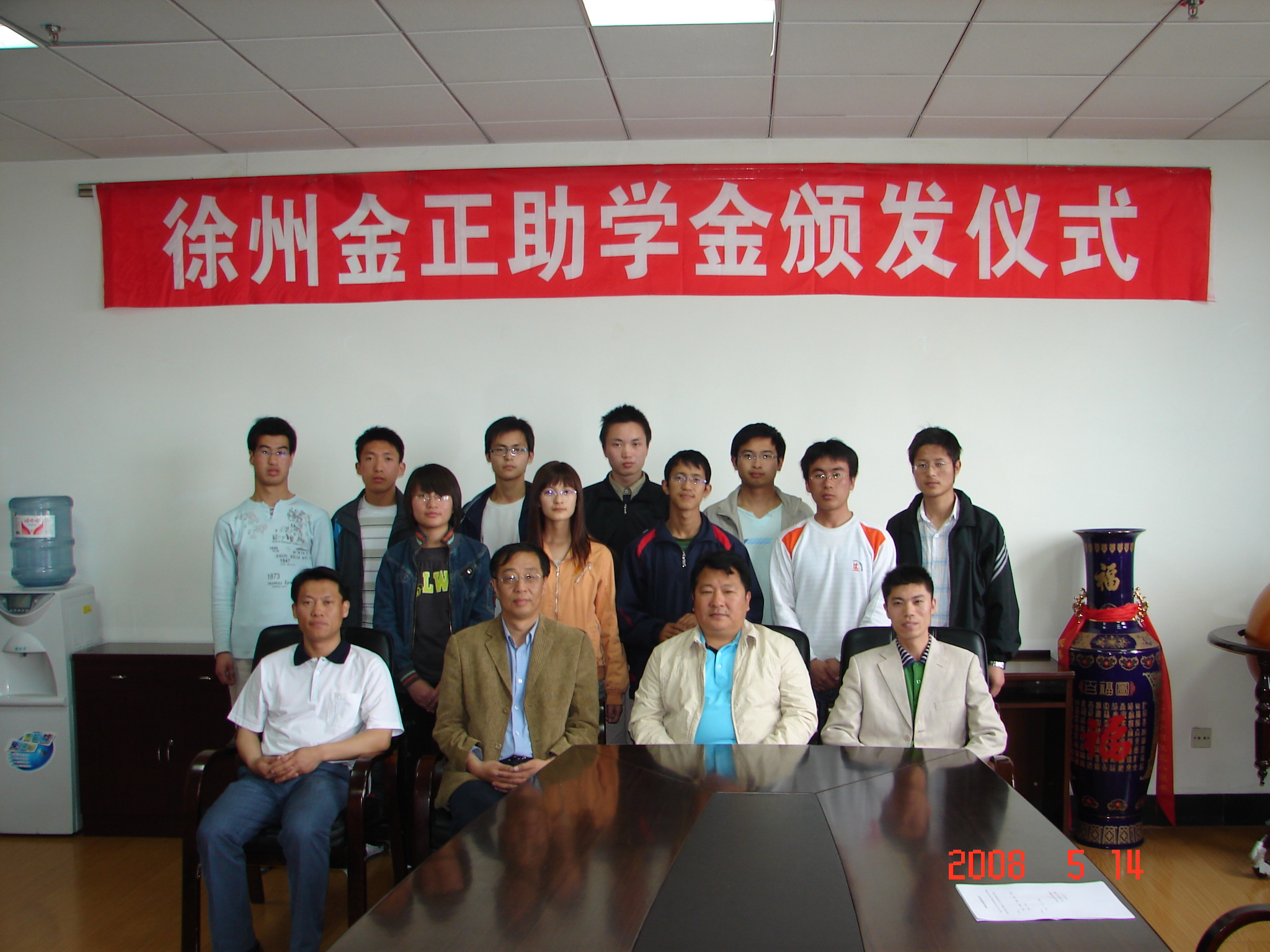 2008年5月14日下午14:00,徐州金正助学金颁发仪式在bevictor伟德南岭校区逸夫机械材料馆517会议室成功举行。