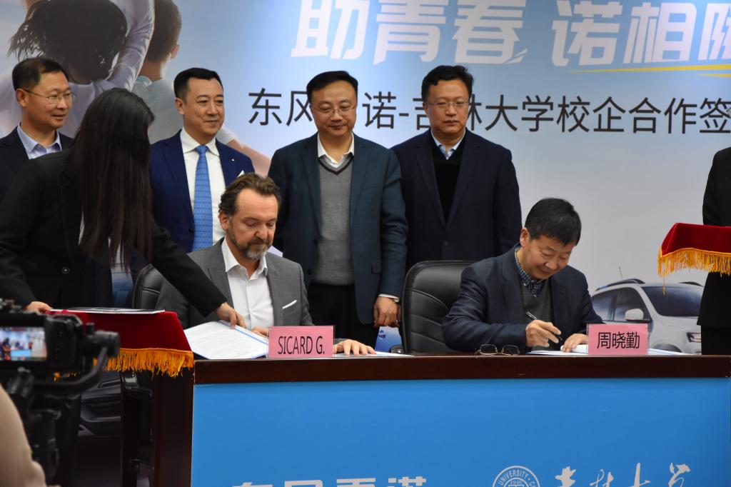 bevictor伟德副经理周晓勤与东风雷诺Guillaume SICARD副总裁代表双方共同签署校企合作协议及实验车辆捐赠协议。