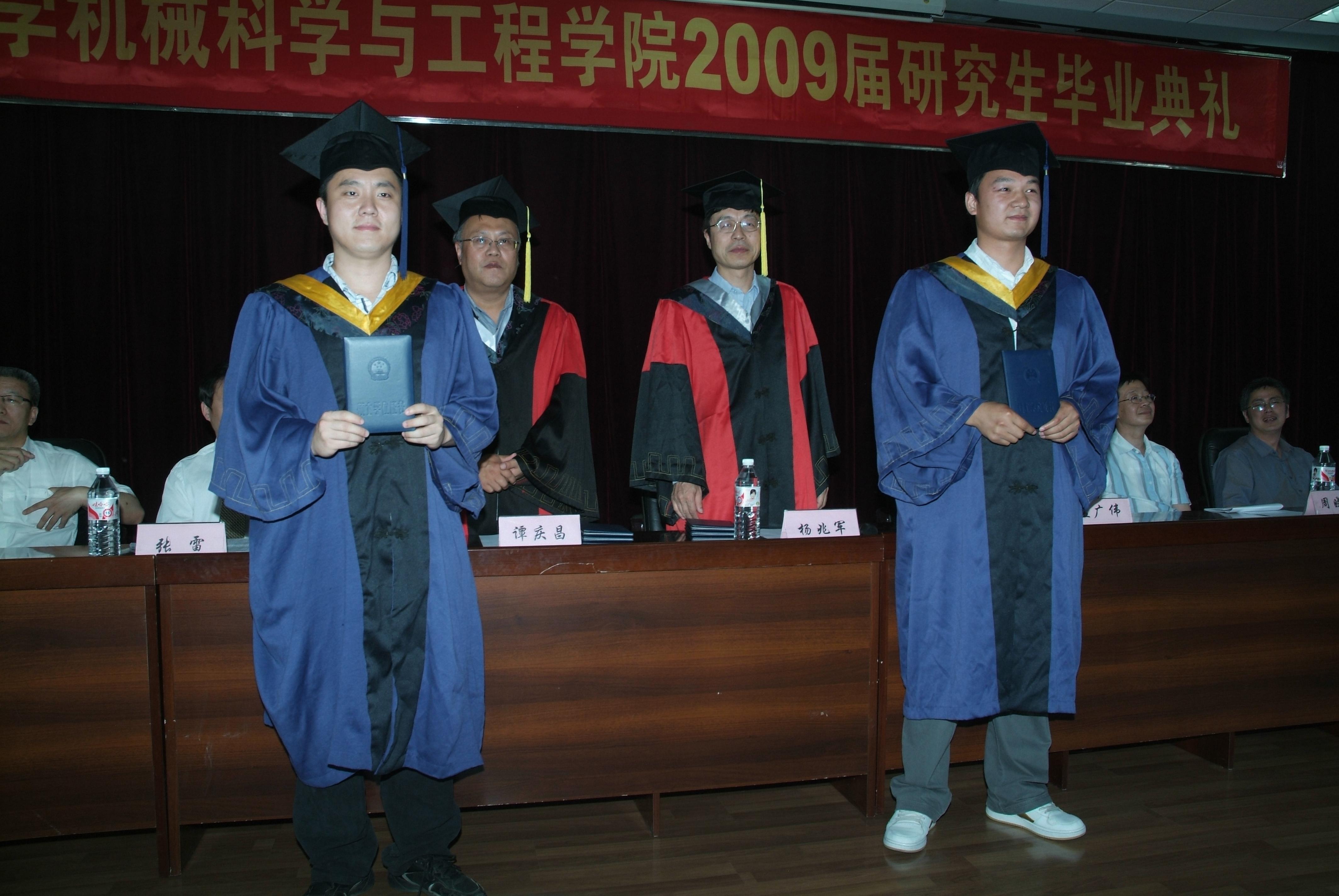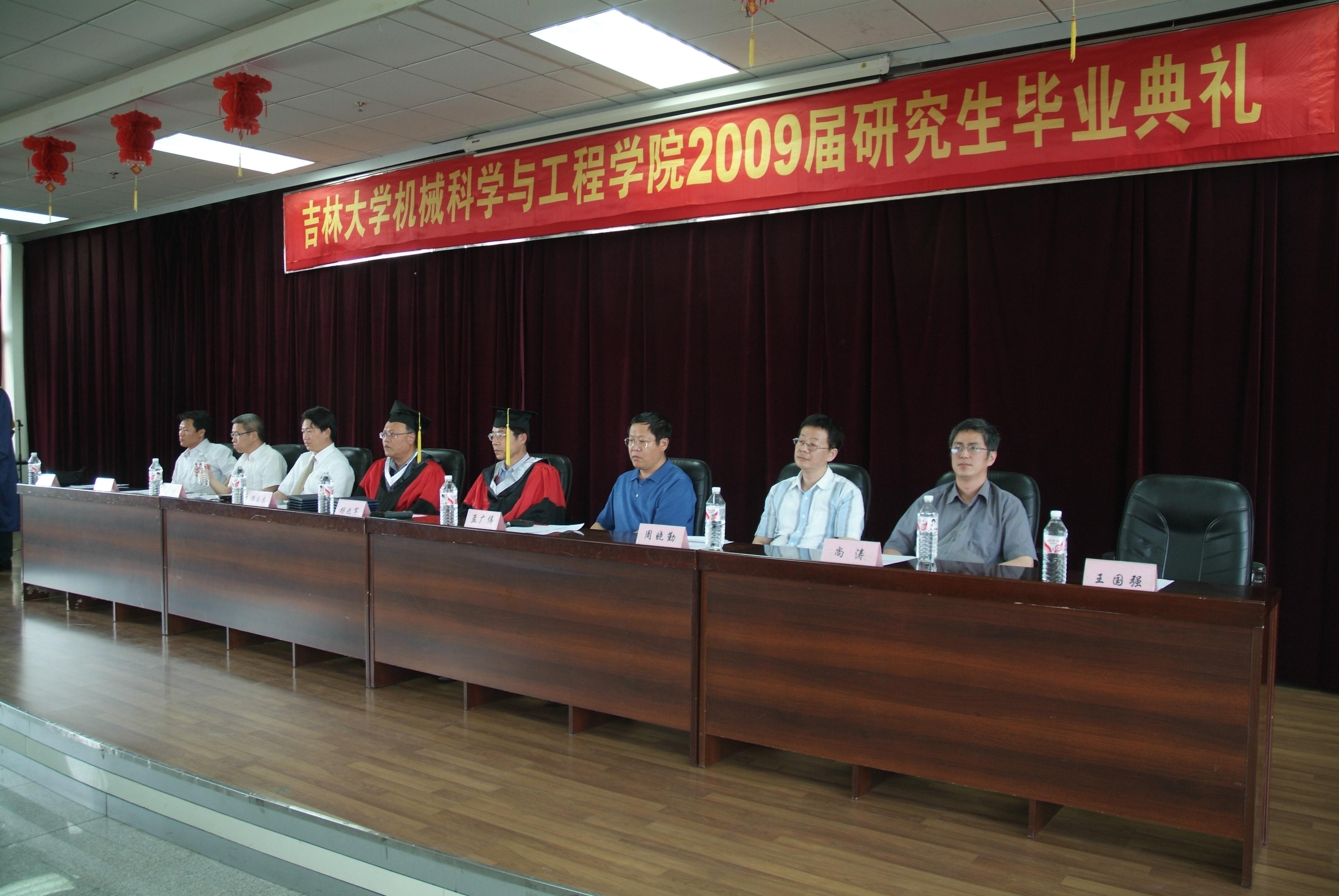 2009年6月22日下午,bevictor伟德2009届研究生毕业典礼在机械材料馆八楼报告厅隆重召开,bevictor伟德经理、博士生导师杨兆军教授,公司党委书记、博士生导师王国强教授,械工程与力学学科学位评定分委员会主席、博士生导师谭庆昌教授,副经理、博士生导师孟广伟教授,副经理、博士生导师张雷教授,机械制造系主任、博士生导师周晓勤教授,机械电子工程系系主任、尚涛副教授,工业工程系系主任、博士生导师孔繁森教授等参加了本次毕业典礼。