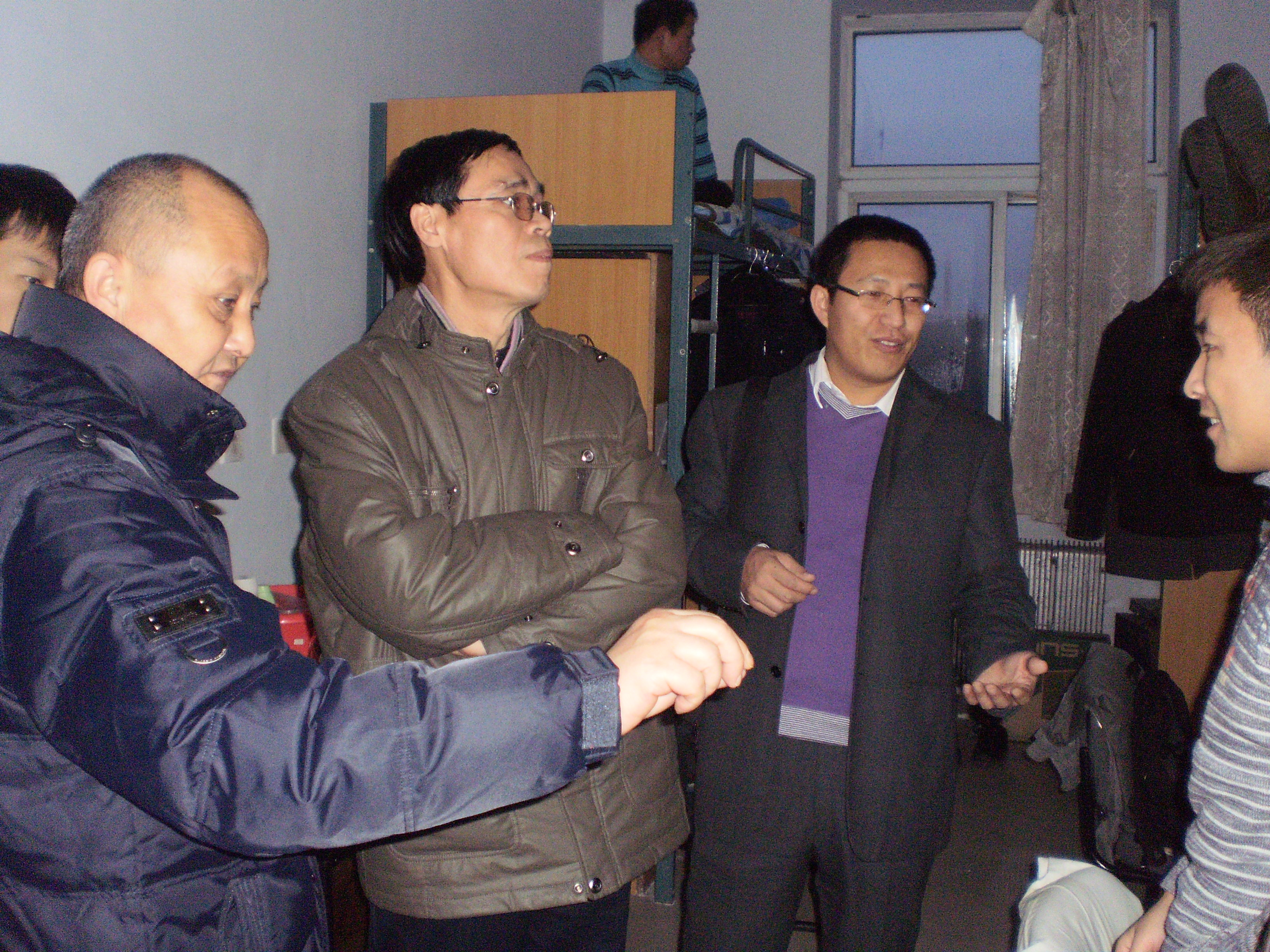 为了净化校园内治安环境,维护公司正常教学工作秩序,保障广大师生人身安全,提高员工的法制意识,12月23日下午,机械科学与工程公司党委副书记郑福胜,研究生办公室主任隋忠睿联合南岭校区保卫办的老师对全院研究生寝室进行管制刀具安全排查。 本次检查在公司研究生寝室中并未发现管制刀具,为慎重起见,检查组对有的寝室内存在可能影响员工安全的因素,都认真提出了处理意见。南岭校区保卫办的老师指出:对管制刀具的检查是一项长期的工作,为保证师生安全,今后我们还会对各个寝室内是否存在影响员工安全的器具问题,进行不定期的抽查,希望同学们积极配合。