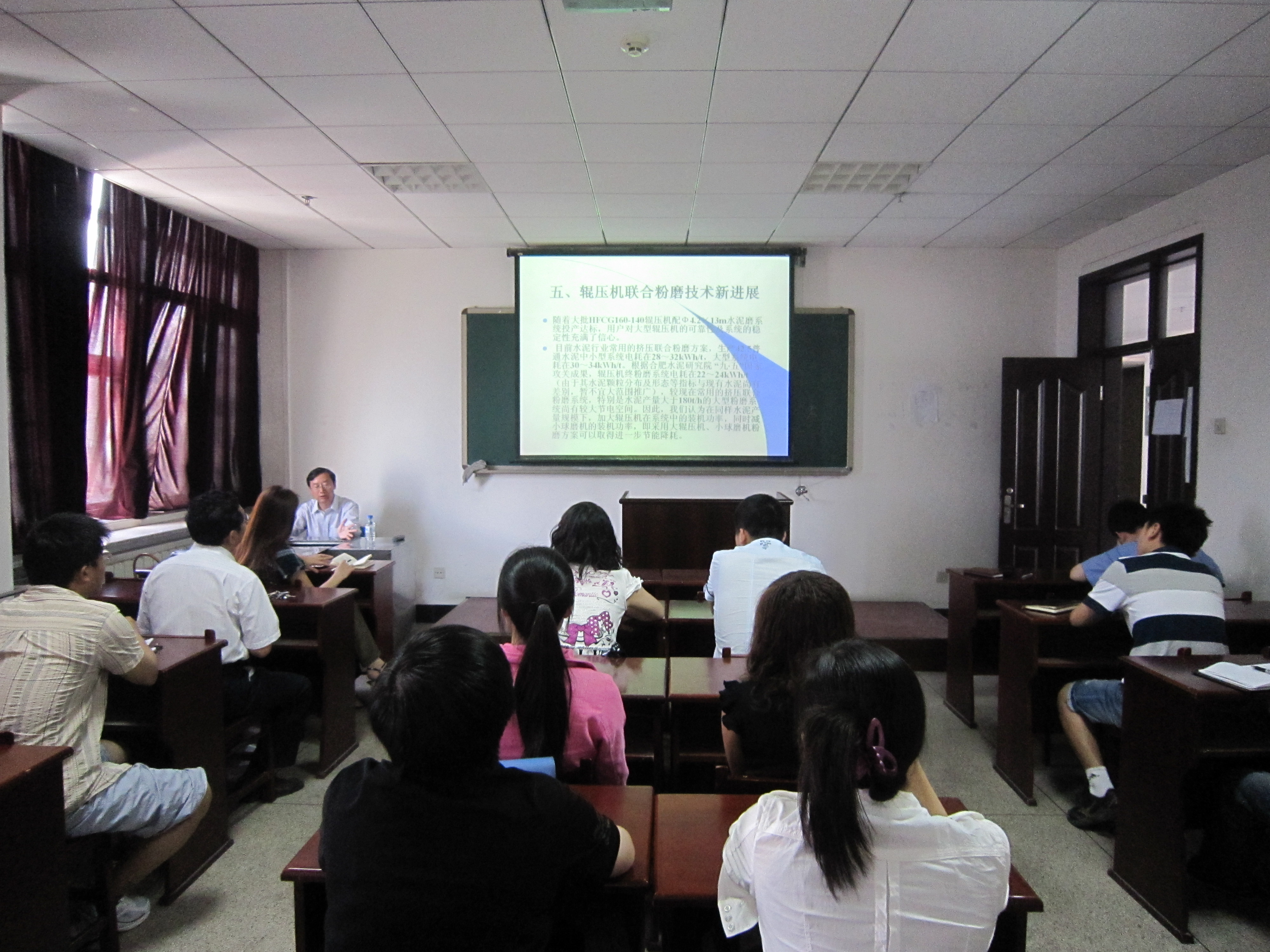 2010年6月7日上午九点三十分,受机械设计及自动化系孔德文教授邀请,合肥水泥研究设计院肥西节能设备厂教授级高工张永龙总经理,在机械材料馆527做了题为“节能型矿物破碎技术与设备”的学术报告。 张永龙教授首先结合所在单位的实际情况,介绍了合肥水泥研究所的概况,然后重点结合粉体工程设备,介绍了辊压机技术的发展概况、辊压机工作原理及特点、辊压机配套设备及其操纵方式、辊压机联合粉磨技术的新进展等内容。此次报告会拓宽了在座师生的视野,得到了与会人员的好评,会场气氛十分热烈。