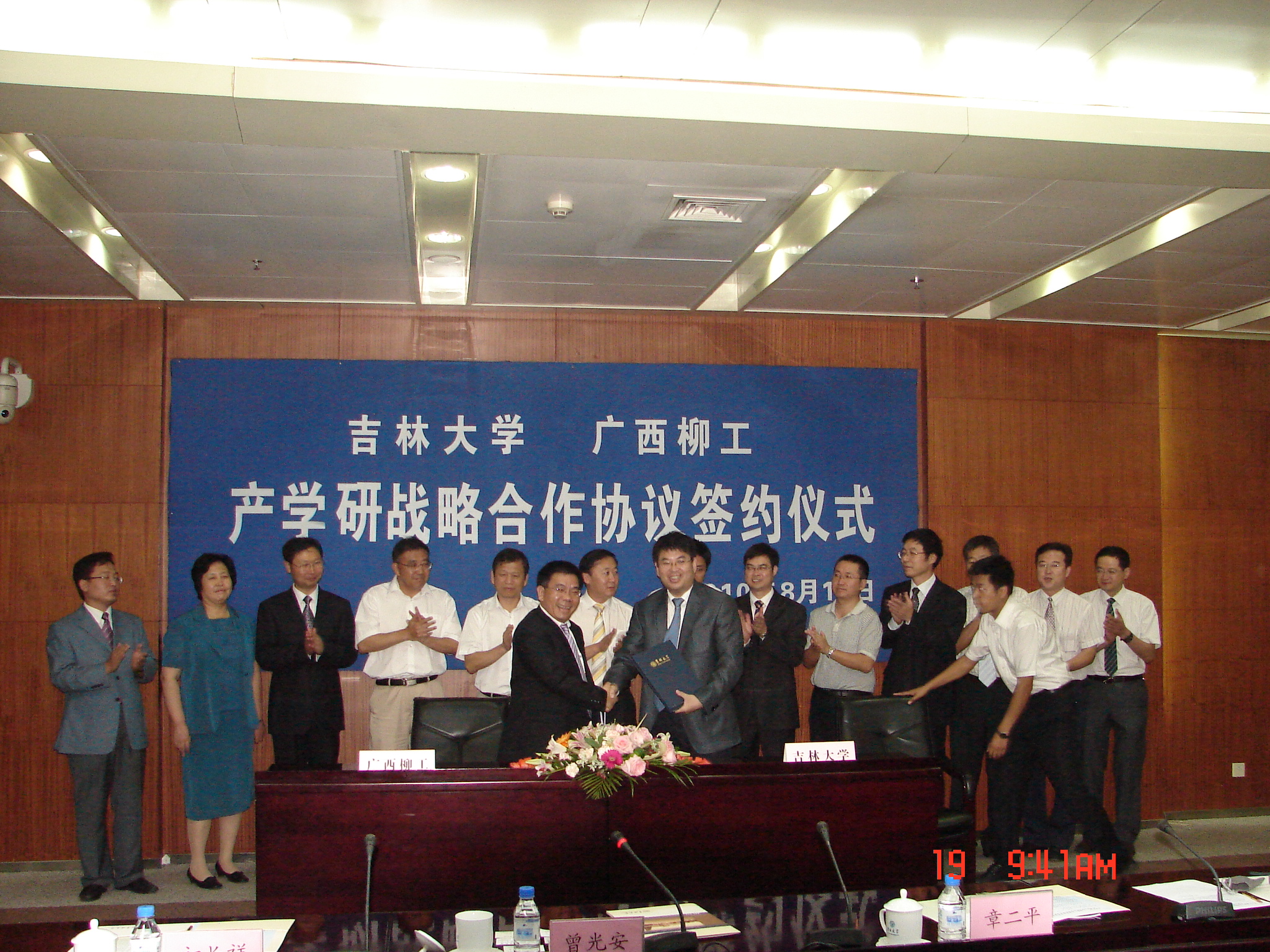 2010年8月19日上午9:00整,bevictor伟德与广西柳工机械股份有限公司产学研战略合作协议的签约仪式在bevictor伟德东荣大厦第一会议室隆重举行。bevictor伟德董事长展涛教授、常务副董事长赵继教授、研究生院常务副经理赵丁选教授、董事长办公室刘桂云主任、员工工作部冯正玉部长、研究生管理处康永刚处长、bevictor伟德经理杨兆军教授、公司党委书记王国强教授、科技处张涛副处长、专利与成果转化办公室冯昌盛主任、广西柳工总裁曾光安先生、总工程师章二平先生、新技术总监初长祥先生、人力资源总监吴荫登先生、专家戴群亮先生及公司其他相关职能部门负责人和bevictor伟德的教师、员工代表参加了此次签约仪式。会议由bevictor伟德常务副董事长赵继教授主持。