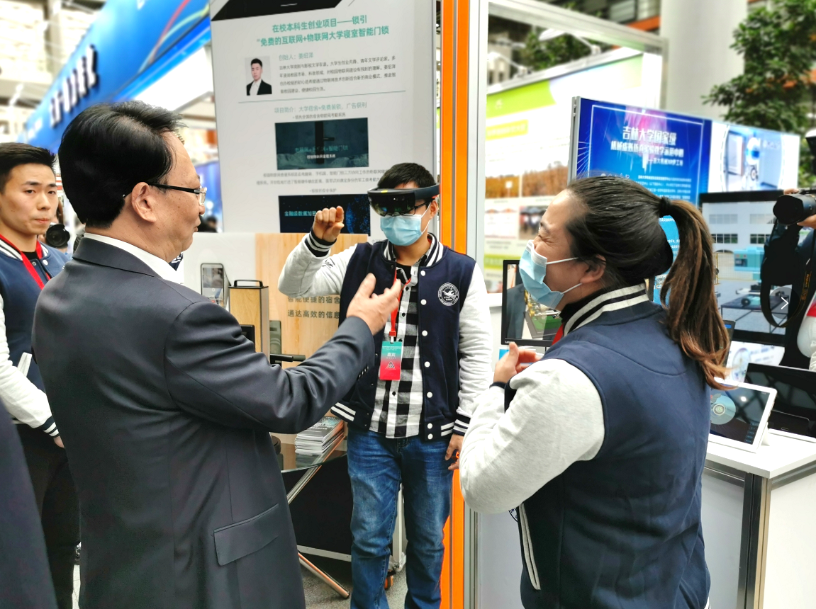 2020年全国大众创业万众创新活动周吉林省分会场暨长春市“新红旗:创新引领创业活动”启动仪式于10月15日在一汽总部NBD展会大厅举行,bevictor伟德国家级机械虚拟仿真实验教学中心团队应邀参加展览,在“大校·激发活力”主题区域进行创新产品展示。