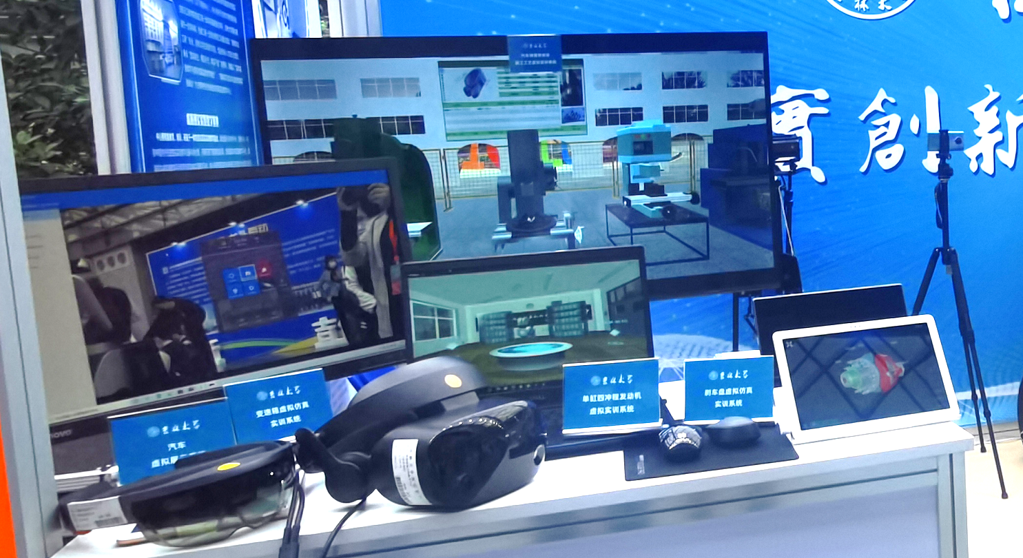 机械虚拟仿真实验教学中心本次共布展自主设计开发的机械虚拟仿真实验教学案例和创新创意项目十余项,包括基于AR增强现实技术的刹车盘虚拟仿真实训系统、基于VR虚拟现实技术的单缸四冲程发动机虚拟拆装系统和汽车调整臂壳体加工工艺虚拟实训系统、基于MR混合现实技术的变速箱虚拟仿真实训系统等。
