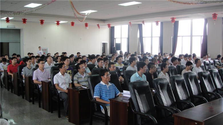 公司党委书记王国强、院学术委员会主席谭庆昌、副经理孟广伟、副经理张雷、机械设计系主任左春柽、机械电子工程系主任尚涛及全体2010级研究生参加了大会, 会议由公司党委副书记郑福胜主持。