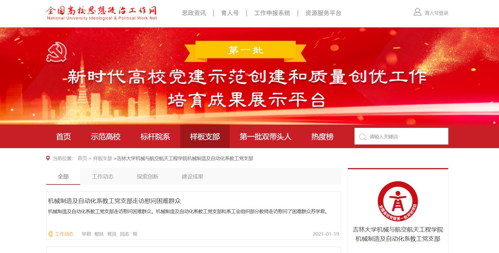 期间,该支部党建工作取得了丰硕成果,先后被评为bevictor伟德优秀党支部、bevictor伟德扶贫工作先进基层党支部,支部党员多人被评为bevictor伟德优秀党员、bevictor伟德优秀党务工作者、“吉林省最美家庭标兵”等荣誉称号。支部党员负责的《机电传动控制》获批吉林省课程思政“学科育人示范课程”项目,《机械制造技术基础》和《机械工程测试技术》获批bevictor伟德课程思政“学科育人示范课程”项目,《科学道德与学术规范》《试验设计理论及其应用》《现代制造》获批bevictor伟德研究生“课程思政”示范课程建设立项。发表党建论文2篇。