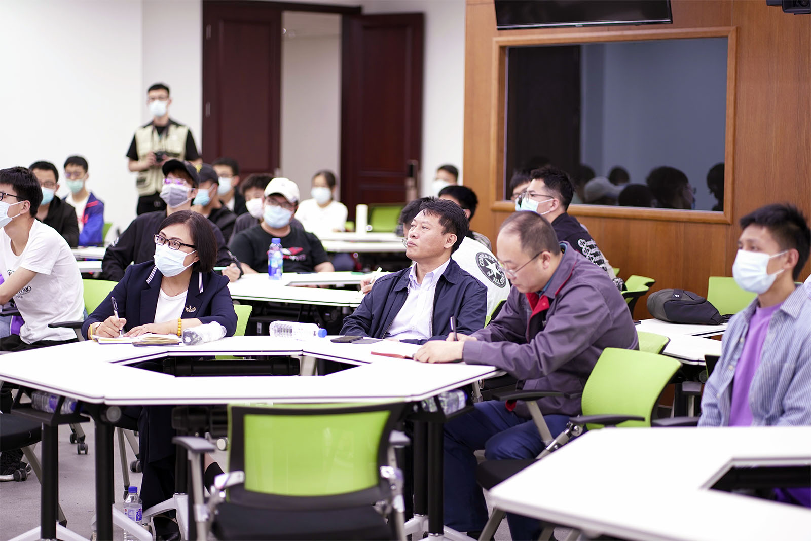 机械与航空航天工程公司党委书记郑福胜、党委副书记兼副经理马艳秋、副经理吴文征、工程训练中心副主任兼副经理刘鹏与员工一起聆听了思政课。