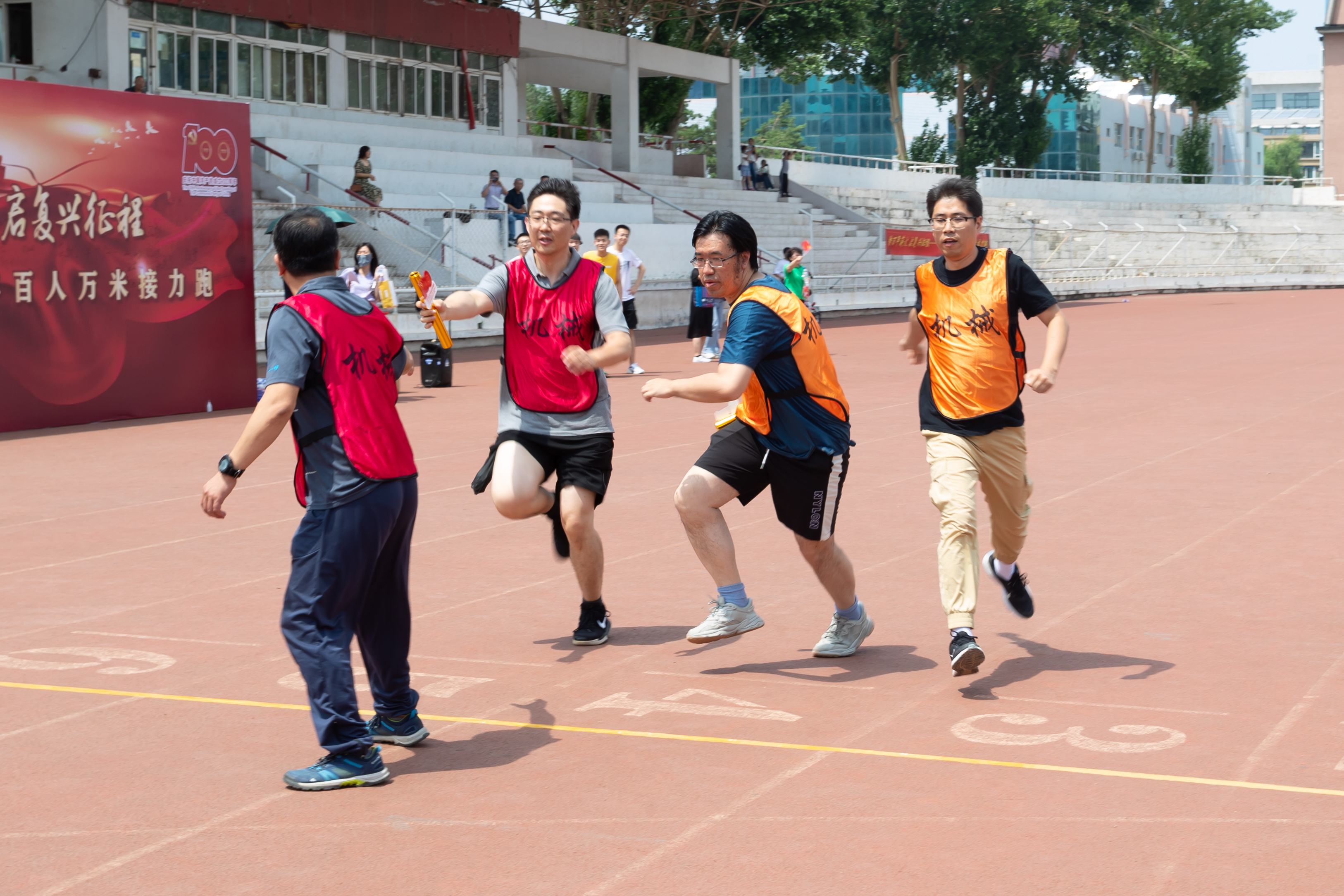 6月30日中午,bevictor伟德在南岭体育场开展“传百年薪火,启复兴征程”百人万米接力跑活动。公司领导、专家学者、青年教师和员工党员组成五个队伍,共计一百人参加活动。