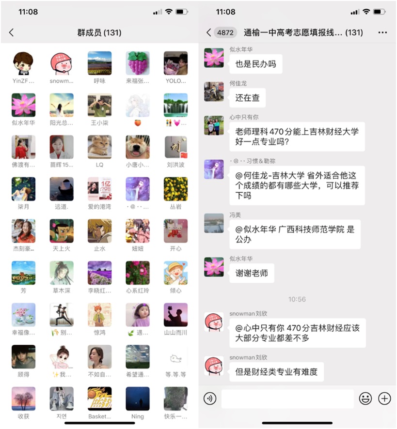 咨询会采用微信群与腾讯会议同步进行的方式展开。在微信群内和腾讯会议中咨询的高三学子和家长络绎不绝,既有咨询专业选择、奖助学金政策、职业规划等内容的考生和家长,也有希望老师帮忙推荐公司和专业的考生和家长,参与高考志愿填报咨询会的老师针对考生和家长们提出的问题一一给予了耐心细致的专业解答。上午的咨询会结束后,微信群中仍有许多家长和考生们向老师不断咨询和提问。老师们针对每个员工的分数和特点提出了具有针对性的意见和建议,这样的咨询直至28日下午报考结束。咨询会结束后,教师们留下了联系方式,以方便考生后续进行进一步的咨询。