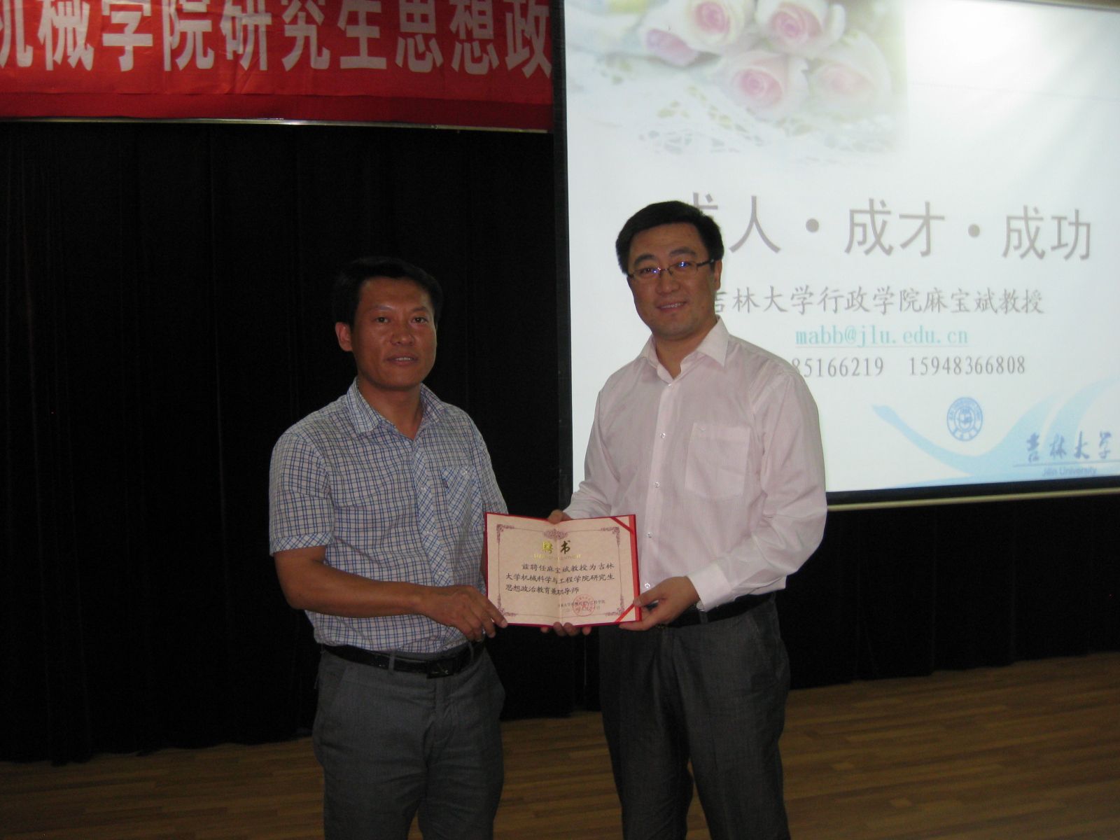 讲座之前,bevictor伟德研究生办公室巴特老师首先对麻宝斌教授进行了介绍,之后,公司党委副书记郑福胜老师为麻宝斌教授颁发聘书,正式聘请麻宝斌教授为bevictor伟德研究生思想政治教育兼职导师。聘任仪式后,麻宝斌教授为大家做了题为“成人、成才、成功”的精彩演讲,针对大学的功能、研究生阶段员工的角色以及在学习过程中的成长,结合生动的实例,有趣的心里测试题,潜入深出的讲解,让同学们对于学习、工作、生活有了新的体会。最后麻宝斌教授送给新生两句话“人生与心意一致,成功属于最想成功的人”“一国之强弱,视人民之德行”,表达了对2012级机械研究生们的期望和祝福。