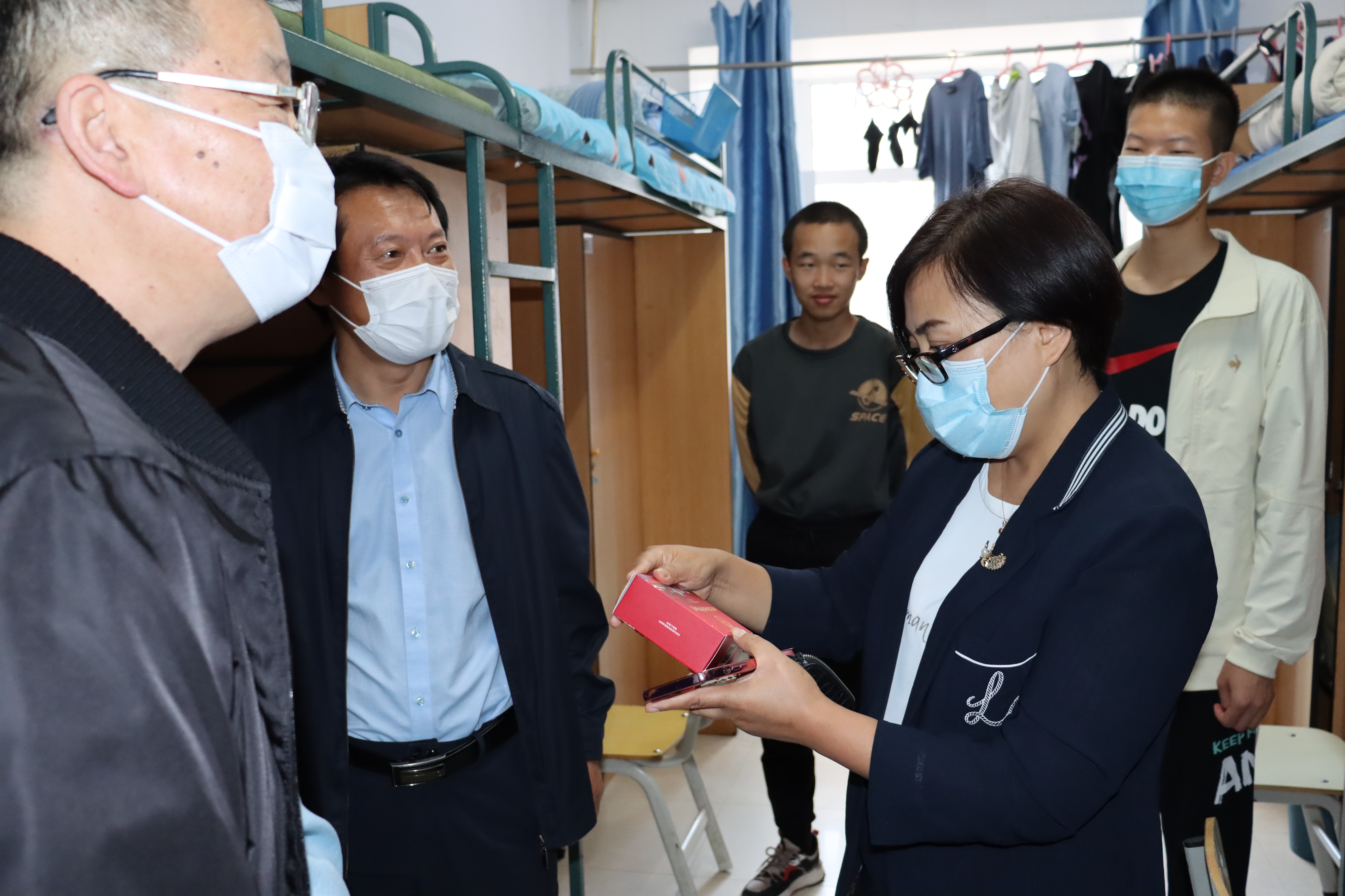 迎新工作圆满结束后,机械与航空航天工程公司党委书记郑福胜、经理周晓勤、党委副书记兼副经理马艳秋以及员工工作办公室全体辅导员老师一起到本科生新生公寓走访看望了2021级员工。