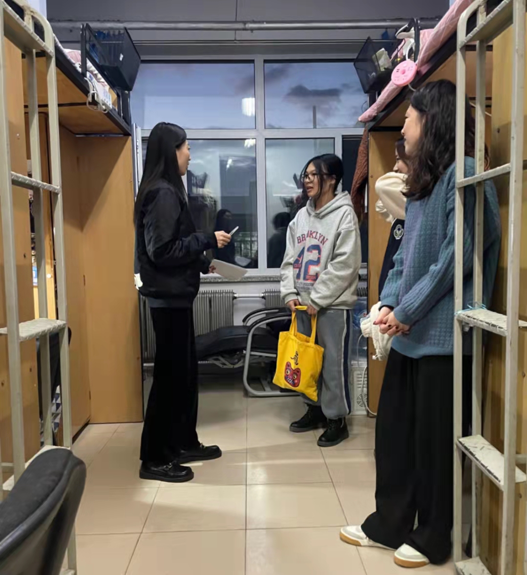 秋季天气干燥,成为火灾发生的高频时段。张瑛老师每走访一间寝室,都会细心地跟同学们强调安全用电的重要性,告诫同学们对于存在安全隐患的电器不能存在侥幸心理,严禁违章电器的使用。正值深秋,昼夜温差大,张老师提醒同学们注意保暖、预防感冒,对自己和身边的人负责,让远离家乡的同学们感受到了家的温暖。