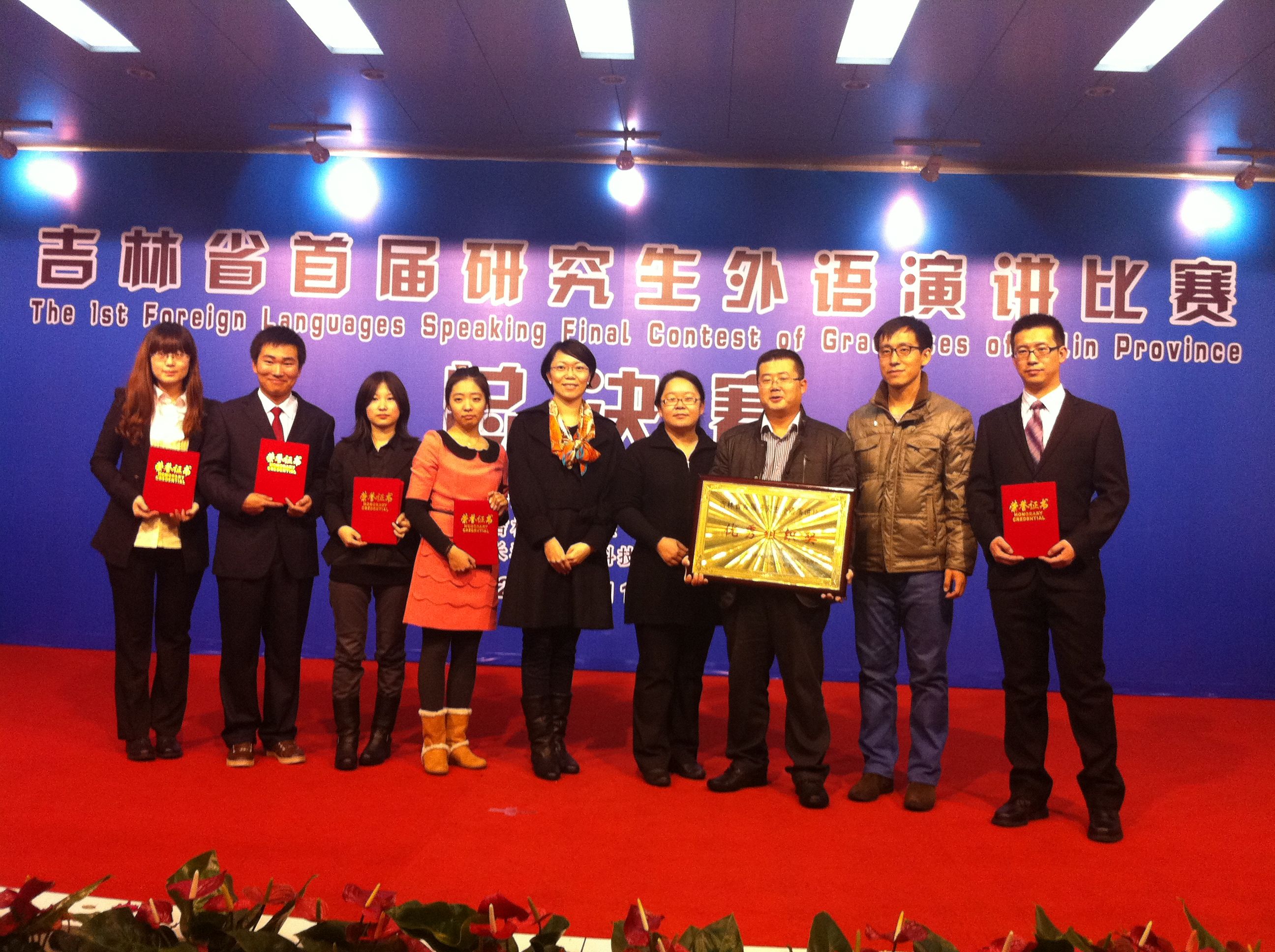 11月16日,由省教育厅同《中国研究生》杂志社共同举办的吉林省首届研究生外语演讲比赛在吉林农业大学举行。 吉大的9名选手与来自东北师范大学、吉林农业大学、吉林师范大学、长春理工大学、吉林财经大学等13所高校的38名选手同台竞技。经过激烈角逐,2012级翻译硕士研究生张倩以全场最高分91.34分的成绩获专业组特等奖,2011级语言学硕士研究生李伟获专业组一等奖;2012级文公司王厚萱获非专业组特等奖,2011级机械科学与工程公司周明星、2011级汽车工程公司赵帅获非专业组二等奖。2012级语言学硕士逄红等4名同学也以优秀的成绩和良好的表现荣获纪念奖。