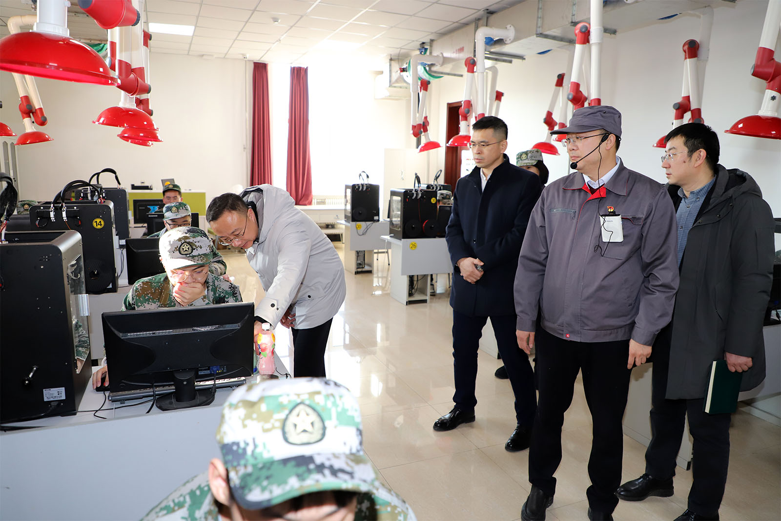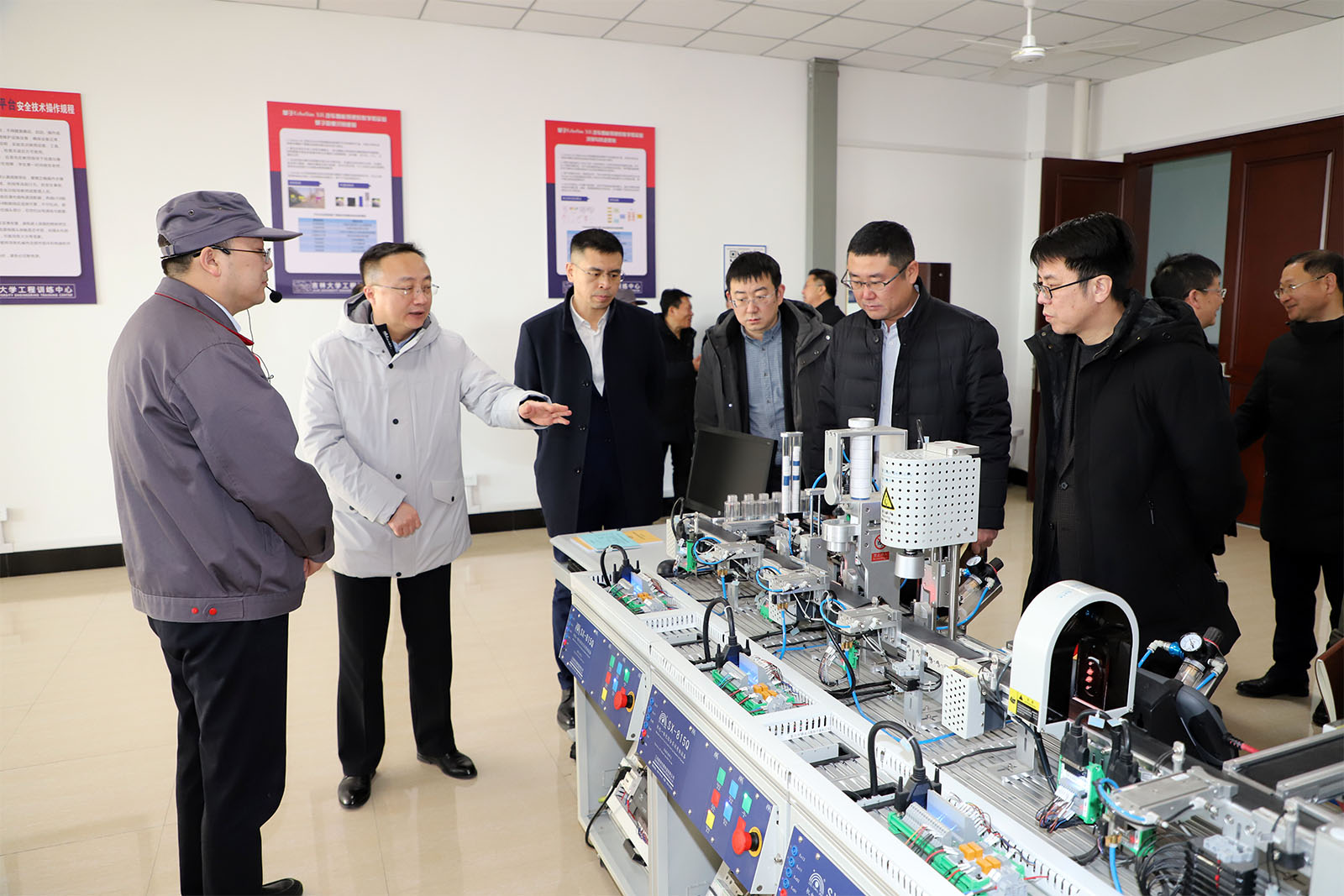 赵宏伟副董事长一行在加工中心、工业机器人、智能制造、焊接、竞技机器人、机电一体化、3D打印、综合训练等实训模块进行了现场调研。