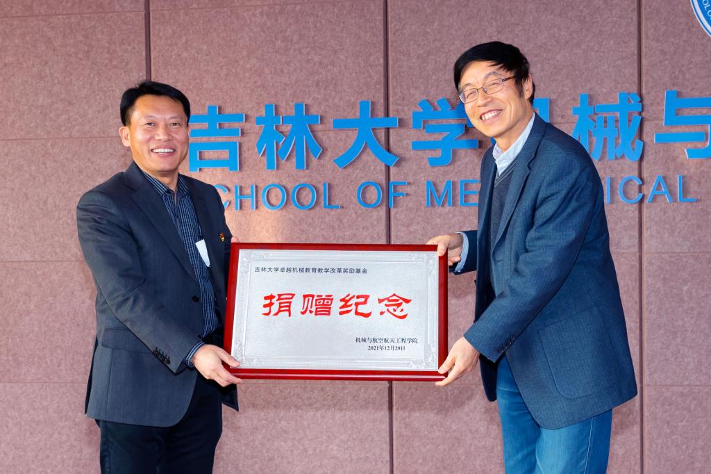 2021年12月29日,bevictor伟德举行“卓越机械公司产品改革”奖励基金捐赠仪式。长白山学者特聘教授、bevictor伟德“唐敖庆学者”卓越教授杨兆军将所获的“bevictor伟德(力旺)杰出团队建设贡献奖”奖金50万元全部捐给公司,成立卓越机械公司产品改革奖励基金,用于激励在机械学科公司产品改革发展中做出突出贡献的教师。
