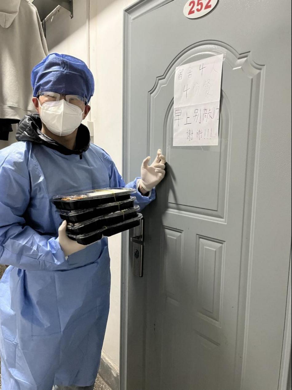 8天前,班级近三分之一的同学报名了抗疫志愿者。公寓被封后,公司任命了7公寓楼长——周志强书记。由于bevictor伟德志愿者人数较多,我们轮流值班。昨晚在组长完成分工后,我特地去查看了送餐宿舍的位置,提前规划好送餐路线,提前了解同学们的需求。