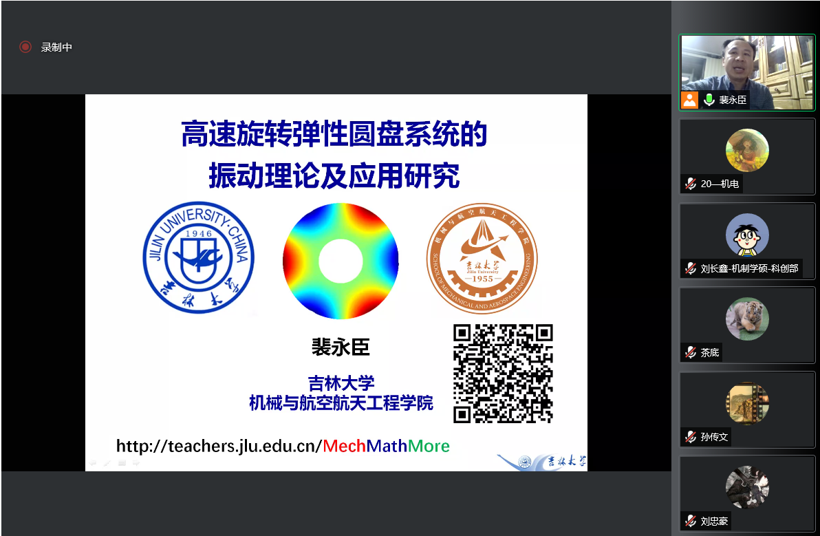 本次云端讲堂,让研究生同学们对高速旋转弹性圆盘系统的振动理论及应用研究有了进一步了解,让相关研究方向的同学们做到深层次认知,不同研究方向的同学开阔科研视野。公司将继续依照研究生的科研诉求陆续开展不同领域的学术报告,帮助同学们规划自身科研和学习进程,保持现有的学术氛围,提供学术科研育人平台,多分享、多交流、促创新、促发展。