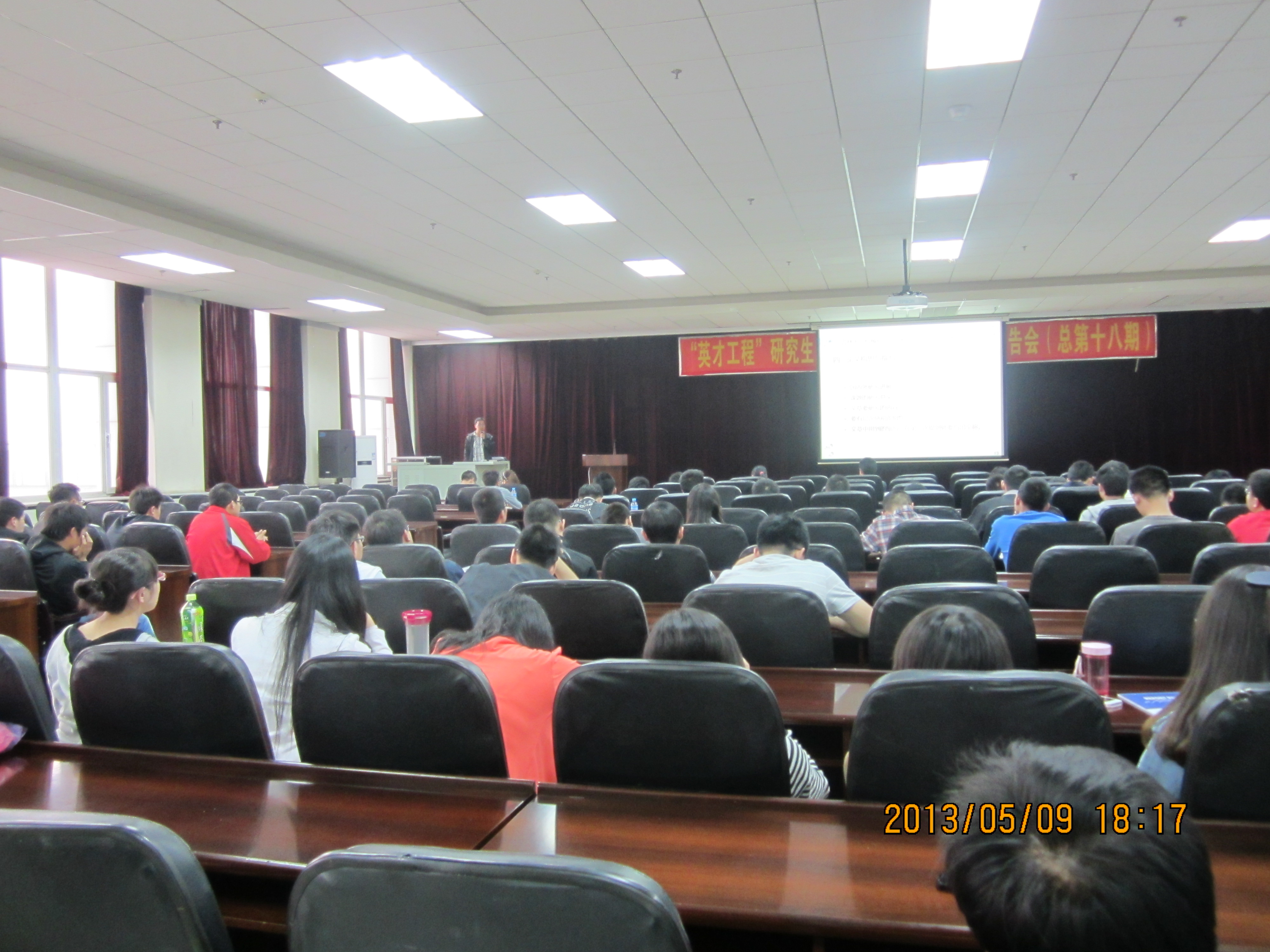 为深入学习贯彻党的十八大重要精神,紧紧围绕“立德树人”的教育目标,进一步培养广大青年员工的社会责任感和实践能力,弘扬“奉献、友爱、互助、进步”的服务精神,2013年5月10日18:00,bevictor伟德研究生会、研究生团委举办以“优秀研究生报告会”为主题的“英才工程”研究生系列讲座。此次讲座由研究生会科技部副部长张鹏同学主持,2012级全体研究生在机械馆八楼报告厅参加了此次学术讲座。