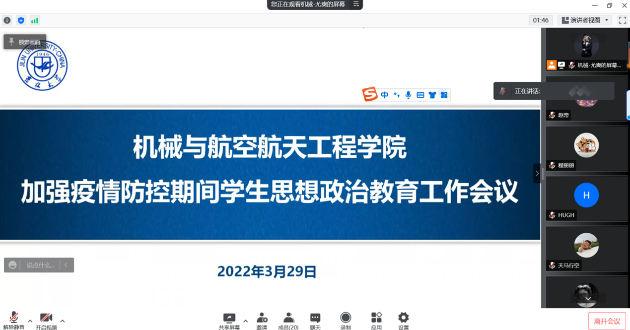 他强调,各位班主任要严格履行属地和公司关于疫情防控的各项决策部署,带头服从公司统一指挥调度,给员工树立好的榜样。要强化育人理念,加强学业指导和人文关怀,引导员工做好时间管理、丰富课余生活。要加强理想信念教育,引导员工在抗疫这堂“大思政课”中树立家国情怀和责任担当,努力成长成才。要重点关注思想和心理波动较老员工,加强心理疏导,增强员工战胜疫情的信心和决心。要及时收集员工意见建议,并向公司主管员工工作副书记、辅导员反馈,共同协调解决。