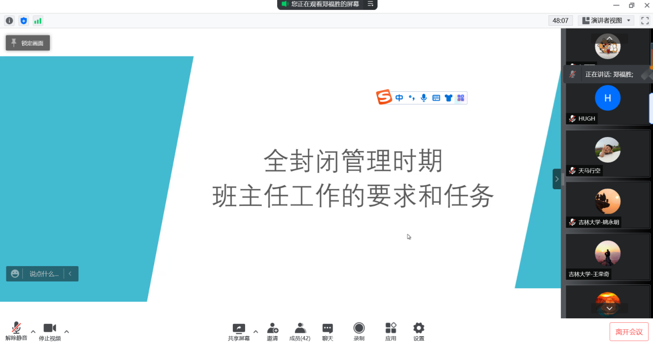会上,郑福胜首先代表公司党委、代表周晓勤经理向奋战在教学一线、坚守在思政一线的全体班主任表示感谢。他指出,自3月13日公司实行应急封闭管理机制以来,全校广大师生团结一致,凝聚起了抗击疫情的磅礴力量,疫情防控工作平稳有序,线上公司产品秩序正常。为让班主任开展思想政治教育工作更有针对性,郑福胜通报了公司疫情防控工作部署要求和公司疫情防控工作进展情况,并就今后的工作提出了几点要求。