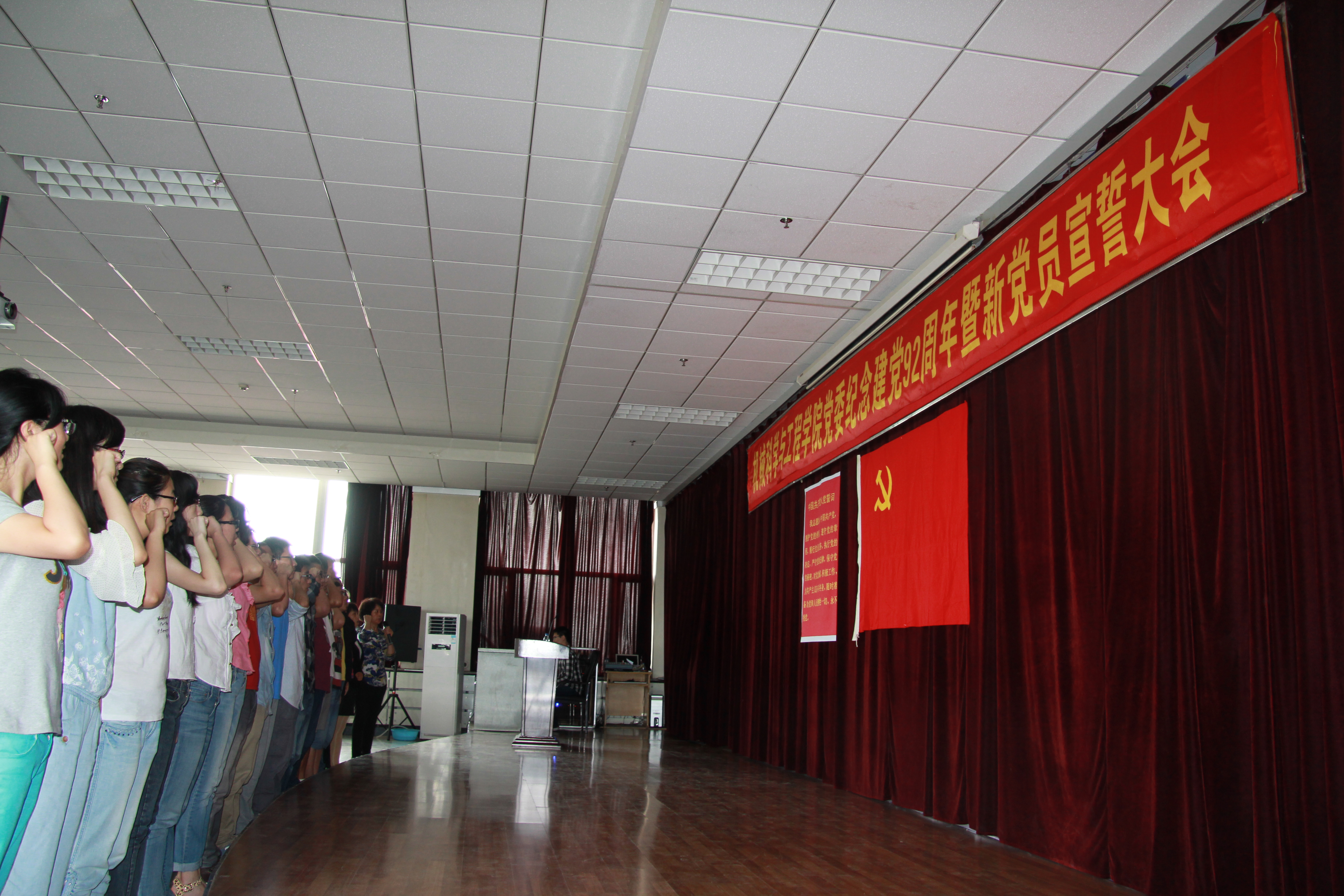 2013年6月21日下午13:30,公司党委在机械馆8楼报告厅举行纪念建党92周年暨新党员入党宣誓大会。今年新入党的全体党员和部分积极分子代表参加了本次大会。会议由公司党委副书记兼副经理郑福胜同志主持。