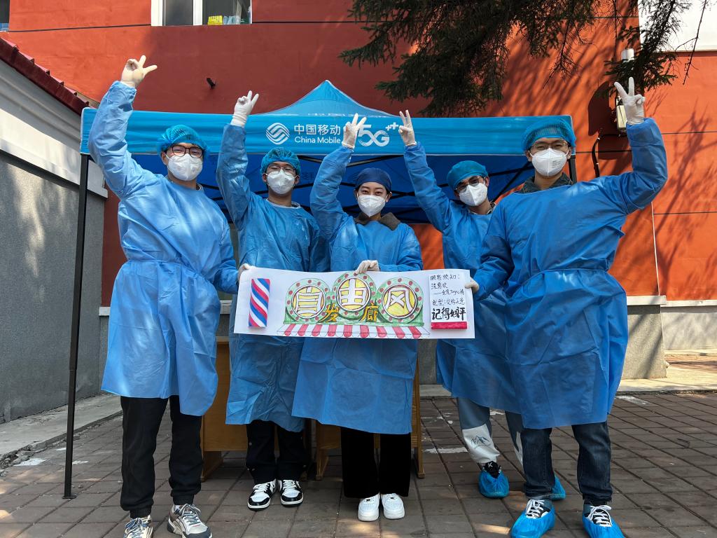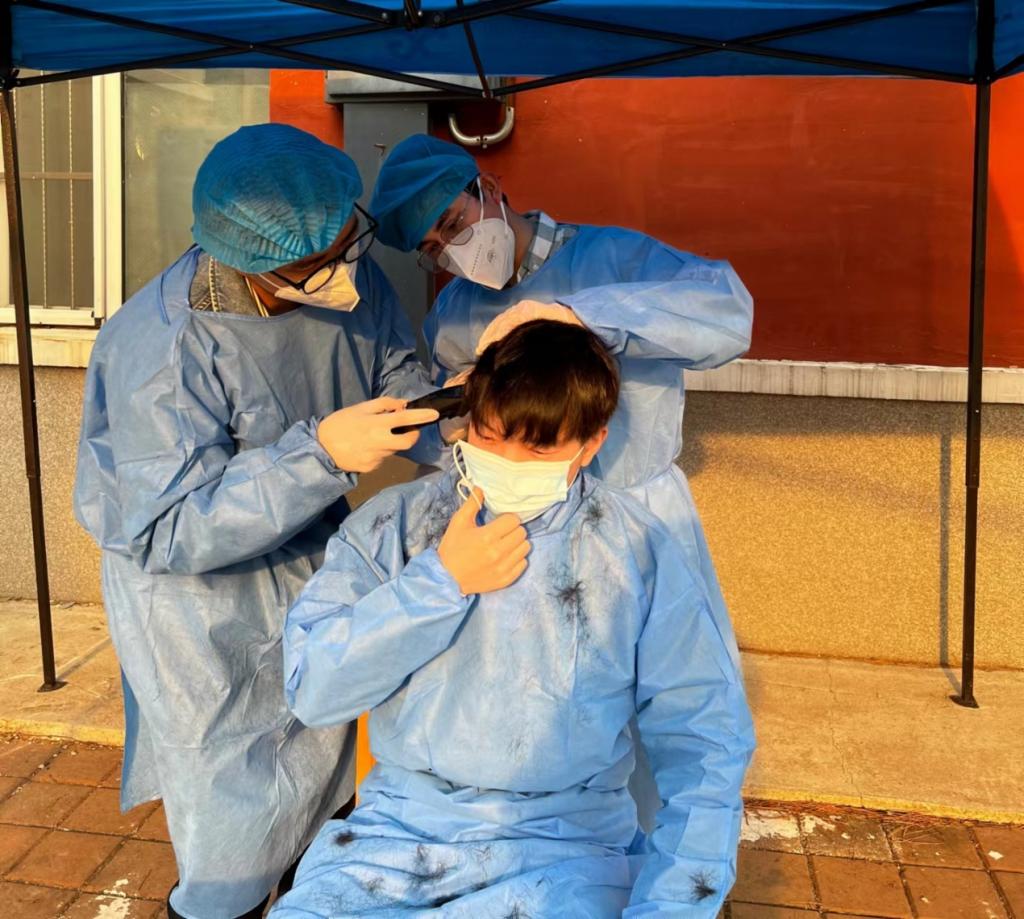 “理发师”高文迪说,“作为一名研究生,科研之余能够为校园疫情防控尽一份心、出一份力,成就感和自豪感油然而生,虽累但值得!相信只要师生一心,众志成城,我们一定能“剪”去疫情的阴霾,让校园恢复往日神采”