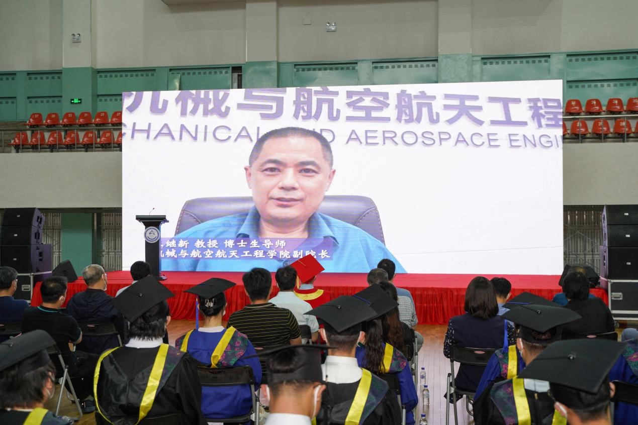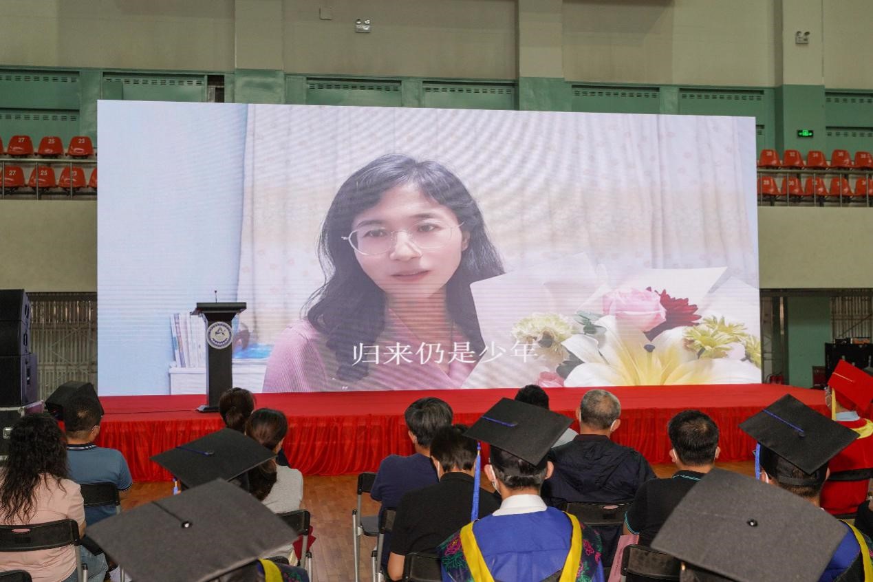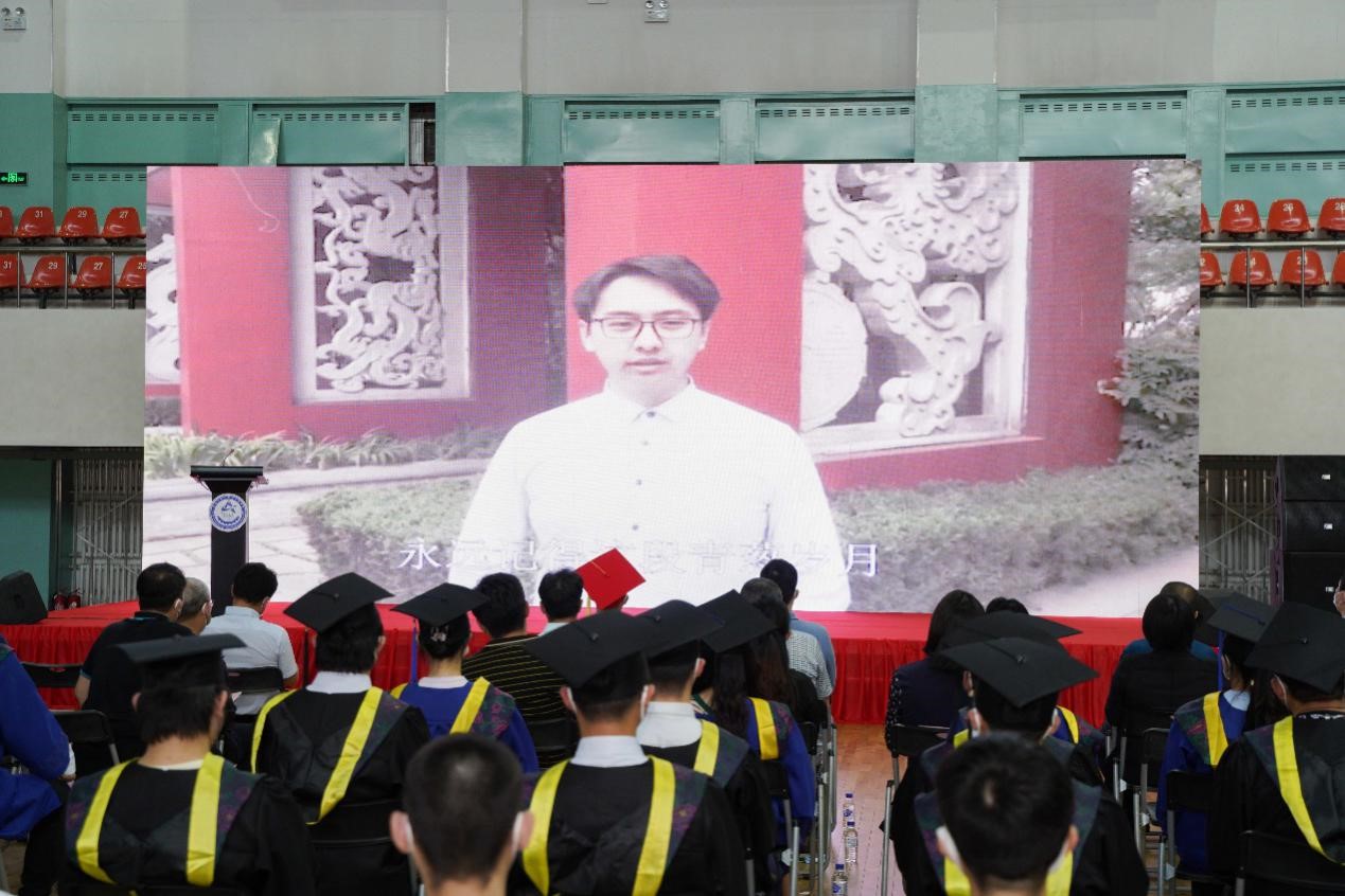毕业本科生代表、毕业研究生代表、毕业本科生家长代表分别发言,通过视频方式,表达了对母校深情的眷恋和美好祝愿。研究生导师代表也通过视频表达了对毕业生们的嘱托和祝福。