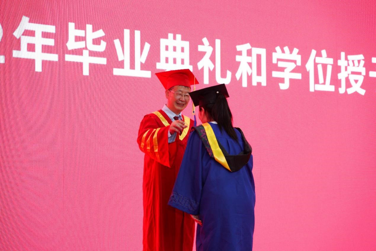 经理周晓勤教授为毕业生代表拨动流苏并颁发学位证书。