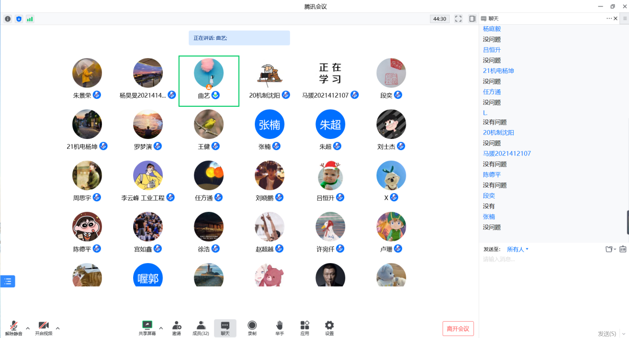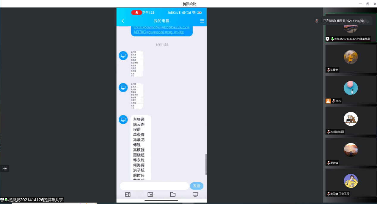 辅导员曲艺根据各个年级研究生的不同情况,围绕暑假期间研究生思想动态变化情况、科研工作进展情况、择业意向及就业情况、学习及生活面临的问题、对新学期的展望与期待等方面,与各研究生代表进行了交流。21级研究生代表就暑假思想变化动态及自身科研进展情况两方面与大家分享:徐浩谈及自身课题组内项目较多,出差时间长,故研一期间本身科研进展一般,计划在研二期间加快自身课题进展,做好开题工作,整体状态良好;赵超越谈到了上半年的长春疫情,期间虽然本身的科研有所怠慢,但感受到了公司的关怀和志愿者的辛苦,暑假自己和老师一起出差,受益颇丰。曲艺也鼓励同学们要坚定信心、克服困难,开学之初为科研开展打下良好的基础。期间,曲艺向新上任的20级学硕班班长沈阳表示欢迎,鼓励沈阳在员工工作岗位上能够继续加强班级凝聚力,为班级同学服务。20级硕士研究生们正值求职季,安鹏谈及了目前就业形势及求职进程的问题,受疫情影响,就业形势较为严峻,自身也还处于简历投递状态;刘士杰、陈德平等其他同学也和大家分享了自己暑期实习经历和获取求职信息的一些渠道,同学们表示收获满满。曲艺希望同学们能够根据自身优势特点选择合适岗位,勉励大家要提升就业能力,增强自信,直视挫折,通过自己的努力找到心仪的工作。