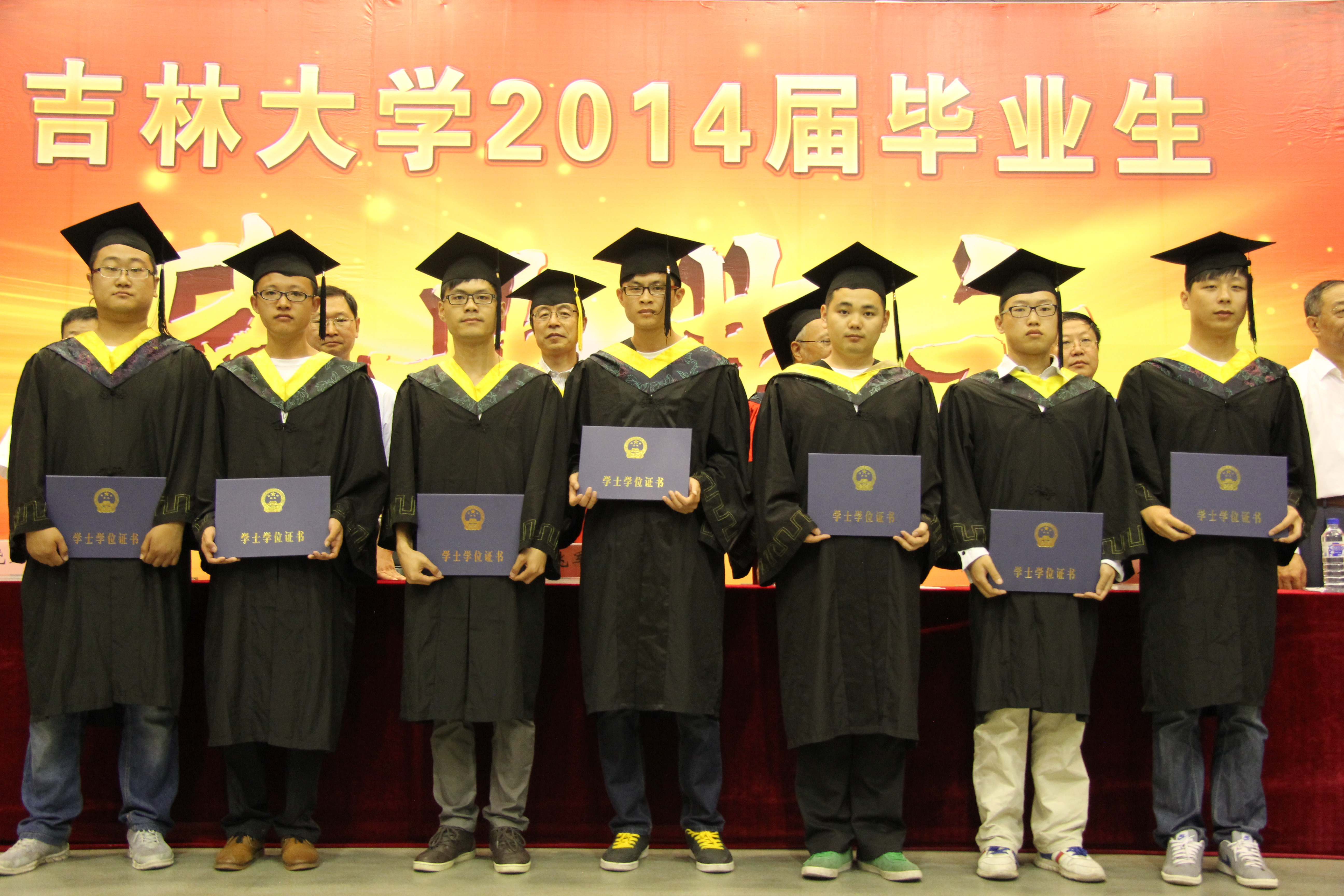 在铿锵有力的国歌声中,大会拉开了序幕,副经理周晓勤教授宣读了获学士学位毕业生名单。公司党委书记王国强教授宣读了《关于表彰bevictor伟德机械科学与工程公司2014届优秀毕业生的决定》。在活泼而热烈的进行曲中,经理杨兆军教授、学位评定委员会主席谭庆昌教授为优秀毕业生授予学士学位、颁发学位证书并合影留念。随后,参会领导为2014届全体毕业生们授予了学士学位、颁发学位证书并合影留念。