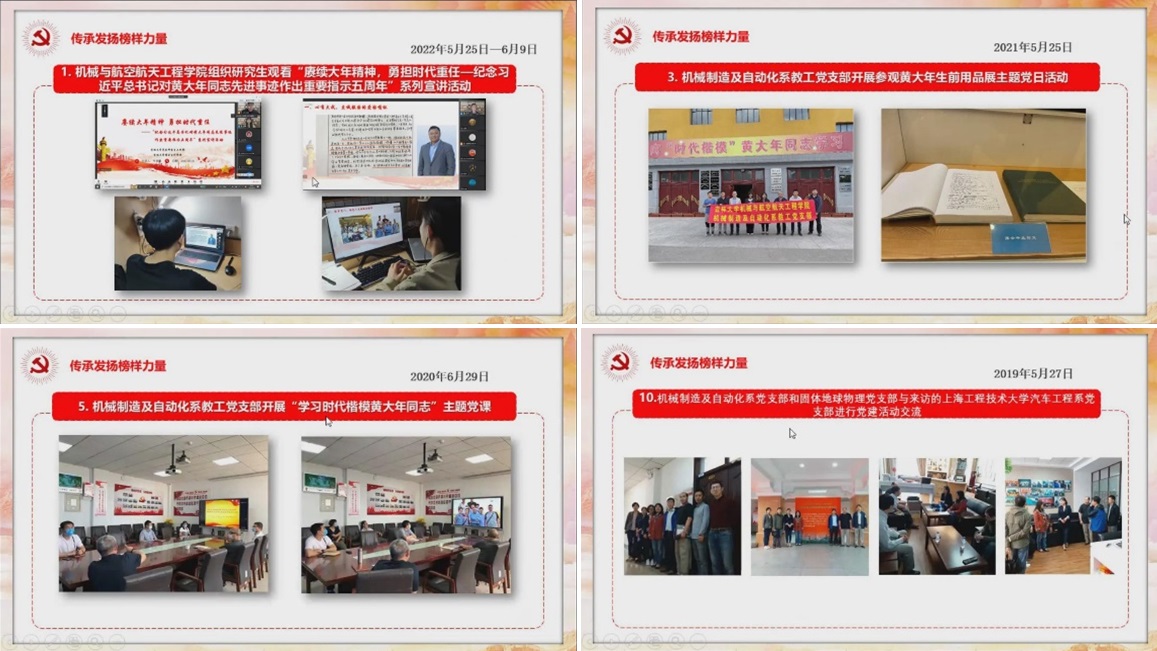 机械制造及自动化系教工党支部于8月15日开展了“赓续大年精神勇担时代重任——贯彻落实习近平总书记对黄大年同志先进事迹重要指示精神”主题党日活动,活动采用线上形式进行,由党支部书记呼咏主持,支部全体党员围绕活动主题,结合本职工作交流学习心得体会,将学习和弘扬黄大年精神不断内化于心、外化于形。