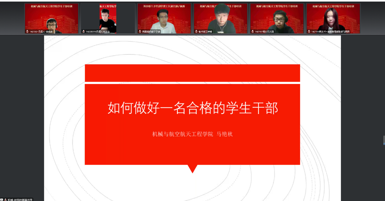 马艳秋强调,要整合和凝聚公司育人力量,形成分工协作、齐抓共管的工作格局,从而为员工成长成才提供强有力的保障。她希望员工干部在秉持“管理、服务、执行、创新”八字职责,以加强学风建设为主线,以培养“创新实践”为重点,保质保量完成公司及校区要求的各项工作。同时她要求员工干部需做到“两要两不”——要团结奉献,要精益求精;不利于集体形象的事不做,不利于个人形象的话不说。员工干部应该“外树形象,内强素质”,管理好自己,才能更好地协助工作和管理他人。她结合自身工作经历,提出应以“关爱员工、挖掘每个员工身上的闪光点”为宗旨,和员工做朋友,让员工拥有幸福感,最终实现把员工培养成为朴实厚重,追求卓越,彰显“四实”品格的机械人、吉大人的目标。最后,她通过讲述分享疫情期间驻校工作的抗疫小故事,生动地阐释了“团结奉献”和“精益求精”的深刻内涵。