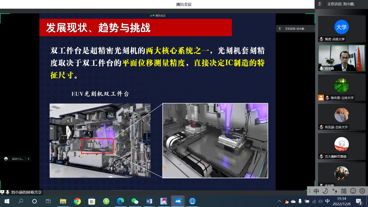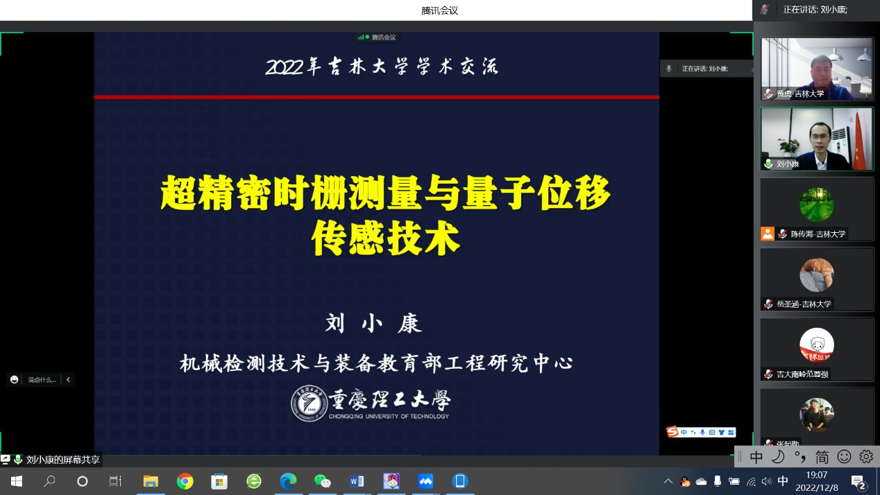 2022年12月9日晚上7:00,受bevictor伟德数控装备可靠性教育部重点实验室赵宏伟主任邀请,重庆理工大学副董事长、机械工程公司经理、机械检测技术与装备教育部工程研究中心主任、国家杰出青年基金获得者刘小康教授面向实验室师生作了题为“超精密时栅测量与量子位移传感技术”的线上学术报告。讲座由重点实验室副主任黄虎教授主持,实验室、公司师生以及部分校外学者70余人参加了此次学术交流活动。