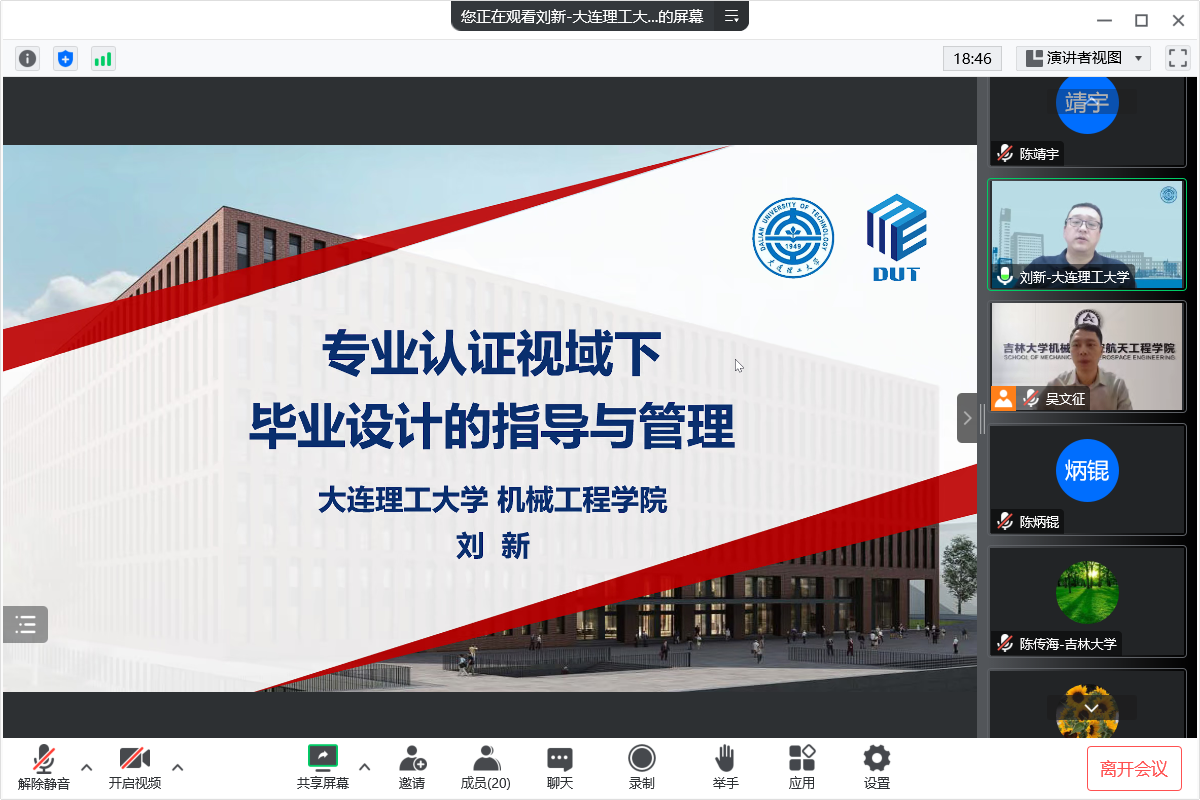 为提升公司教师本科毕业设计指导水平,提高毕业设计作品在全国毕业设计大赛中的竞争力,公司邀请相关专家分享本科毕业设计的指导与管理经验。2022年12月13日公司开展教学交流会,邀请大连理工大学机械工程公司经理助理刘新教授做题为“专业认证视域下毕业设计的规范化指导与管理”的报告,公司30余名教师参会并进行交流,会议由副经理吴文征教授主持。