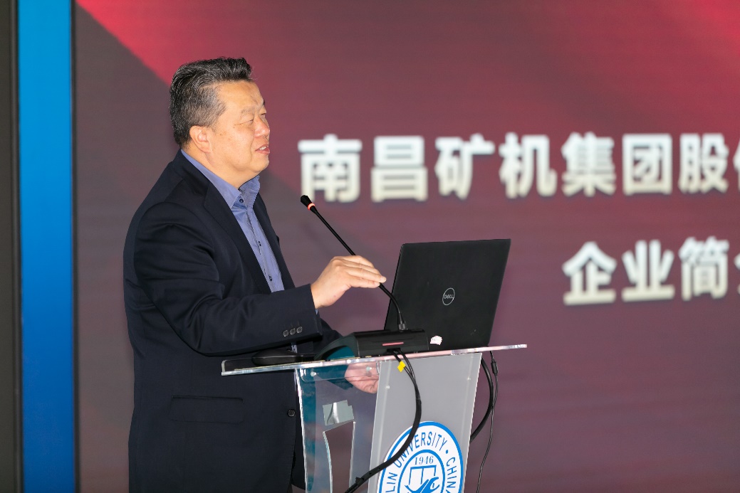 龚友良总裁致辞,他从企业概览、企业发展历史、战略定位、产品系列、全球布局、项目业绩、企业文化和使命七个方面向大家介绍了南矿集团非凡的过往以及广阔的发展前景。他表示,南矿集团的目标是将南昌矿机打造成国内破碎筛分设备和解决方案的领导品牌。作为吉大员工,他也对在场的师弟师妹们提出了期盼,希望大家保持对学习的热爱,既要拥抱书本,又要脚踏实地,从书本中来,到实践中去,深入基层,钻研细致之处,融入广阔行业,在高速发展的世界里,做一个有国际化视野,有无可替代能力的高层次人才。龚友良总裁表示,南矿集团将继续加强与母校的合作,在人才输送、科研实验等方面进行更多互利共赢的交流,成为校企合作的模范。