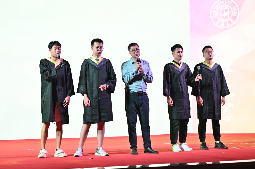 本场晚会表演形式多样,精彩迭出,独唱,街舞,合唱,歌曲串烧……充分展示了学子们多才多艺、自信昂扬的风采。辅导员赵帝老师和毕业生代表们献唱的歌曲《一路顺风》,为2023届毕业生们送上真诚祝福。晚会过程中,毕业生为班主任代表献上鲜花,感谢老师们求学期间的指导和关爱。晚会现场还准备了幸运观众抽奖的活动,主持人与观众们的互动再次将晚会推上了高潮。晚会在歌曲《起风了》的合唱中落下帷幕,师生合影留念,本次毕业晚会圆满落幕。
