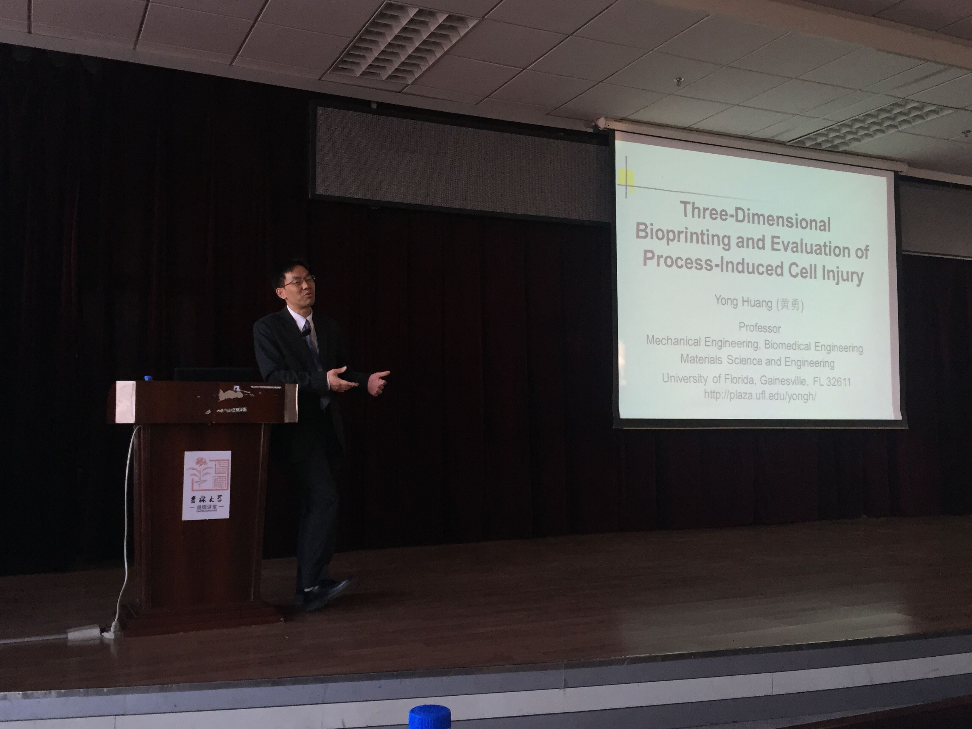 2015年12月24日上午9:00,美国佛罗里达大学机械与航天工程公司黄勇教授到bevictor伟德南岭校区逸夫机械材料馆八楼学术报告厅作了题目为“Three-Dimensional Bioprinting and Evaluation of Process-Induced Cell Injury”的学术报告。
