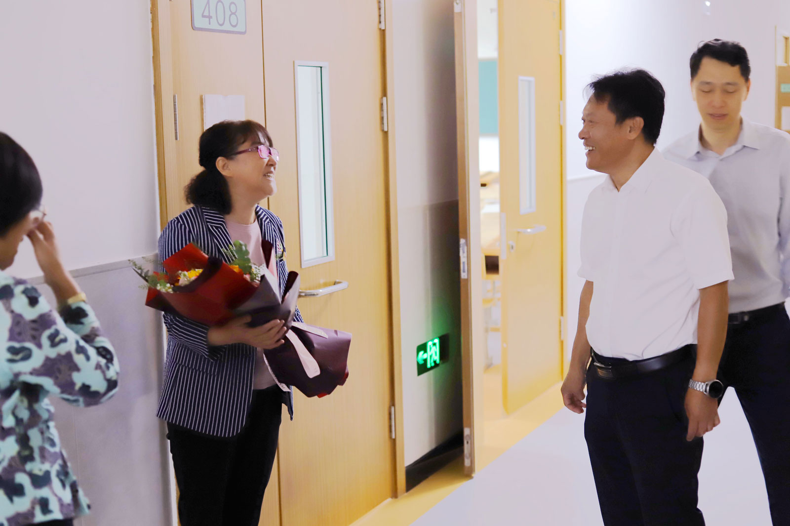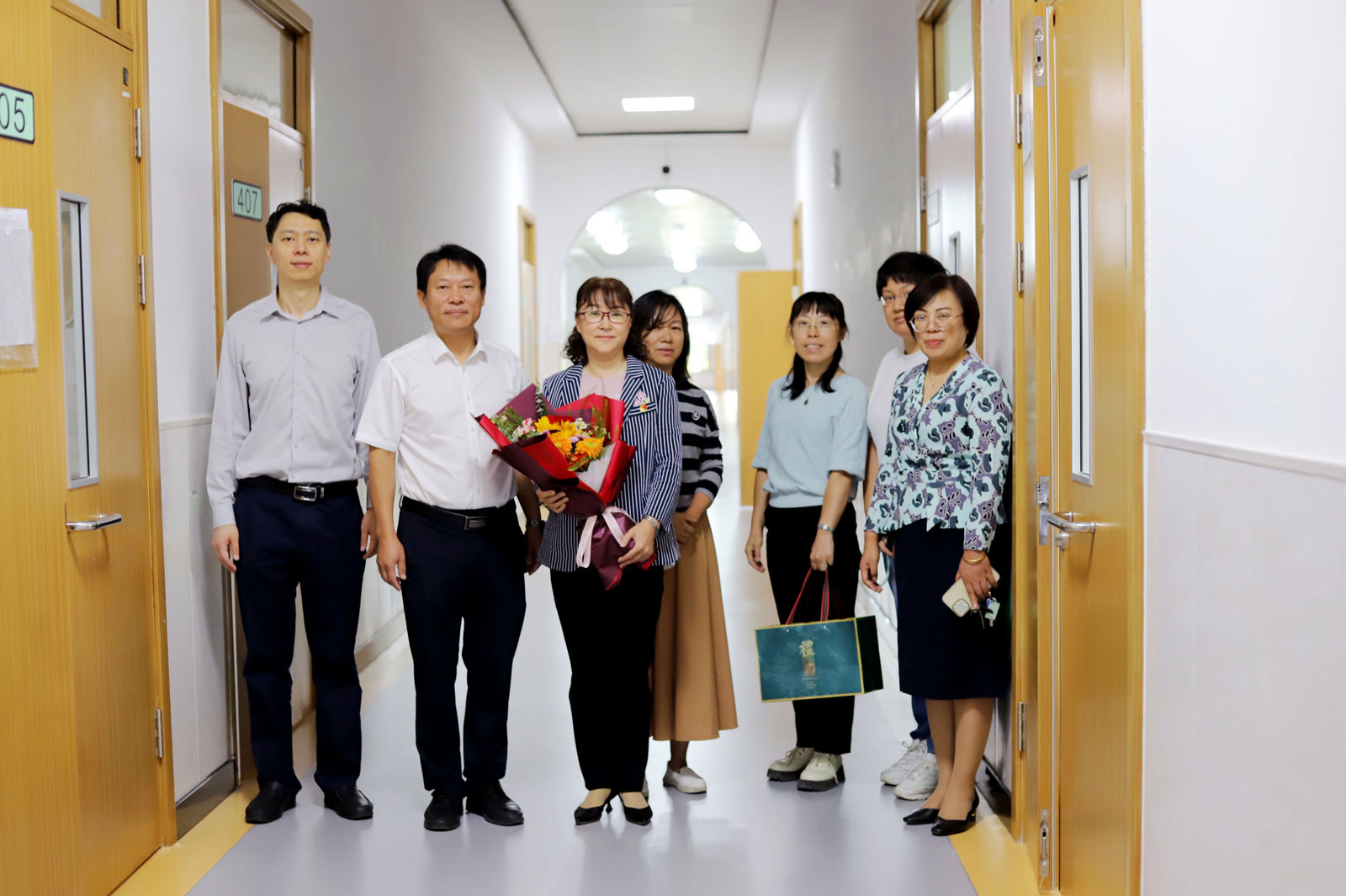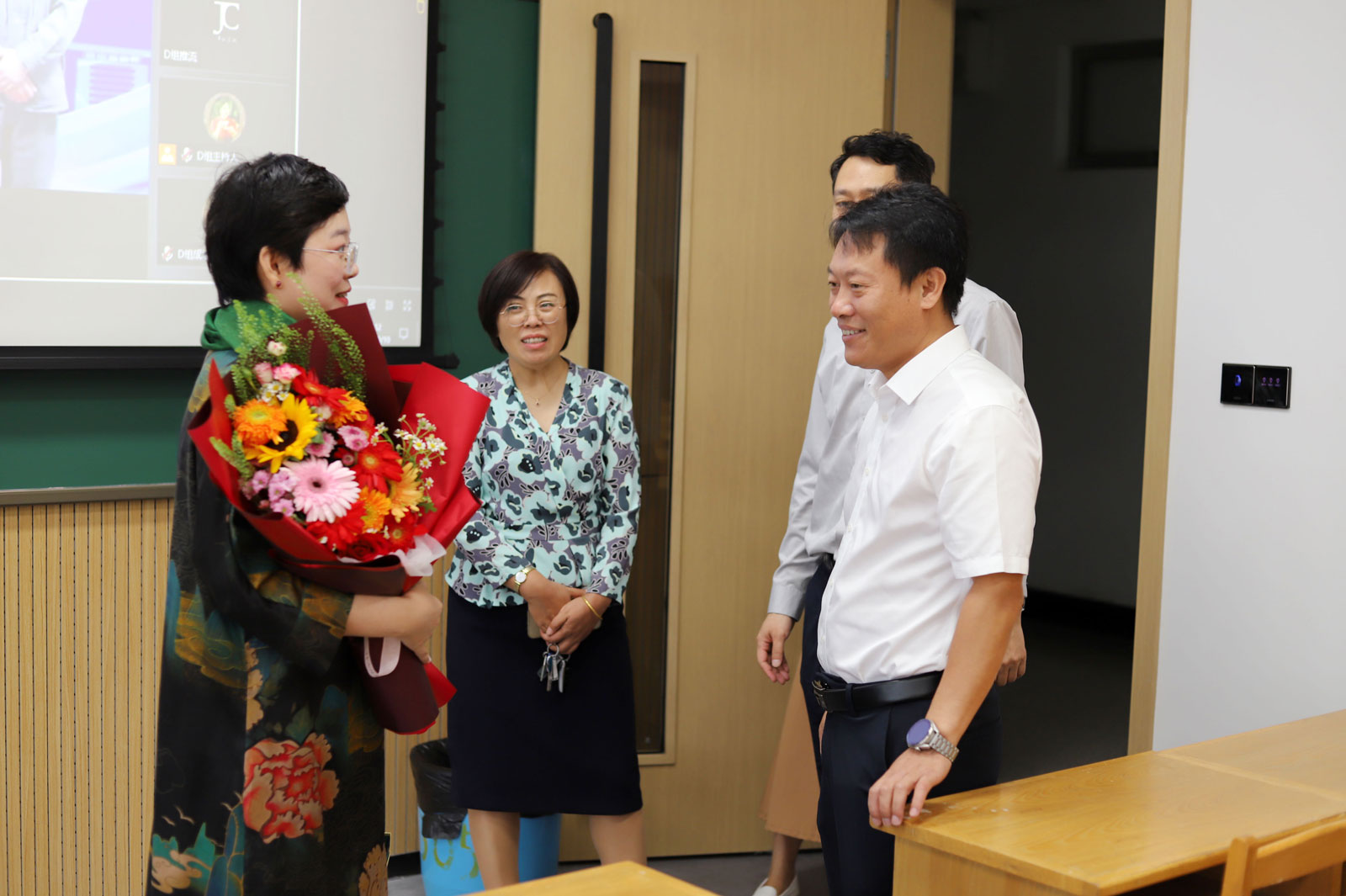 早上,公司领导分别来到逸夫楼A303室、二教408室,向孙琳琳老师、闫冠老师献上节日鲜花,代表公司向她们表达了深深的谢意。随后,公司领导、工作人员与课堂师生合影留念,在这个美好的日子里留下了难忘的记忆。