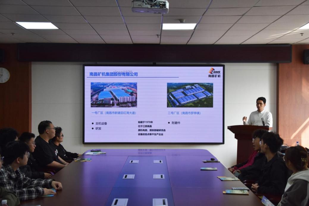 首先,赵剑峰结合工作实际为同学们做了校园应聘指导,他强调,在择业前必须明确自己想干什么、擅长做什么,同时要结合自己的兴趣、特长、专业来确定就业目标;要围绕就业目标,多渠道获取就业信息,为选择适合的岗位奠定基础;在面试前要打磨一份精美的求职简历,注重面试礼仪和技巧,不断塑造自身形象。他还从营业发展、公司平台、主营产品、全球布局,企业荣誉以及政府合作等方面介绍了南昌矿机集团的就业优势,从薪资待遇、公司环境、社交活动等方面介绍了公司员工福利。公司2022届毕业生、南昌矿机研发中心破磨设计所杨保存将自己入职后的体会和收获与同学们进行了分享。最后,他们与现场员工进行了亲切交流,对员工提出的相关问题给予了热情解答。