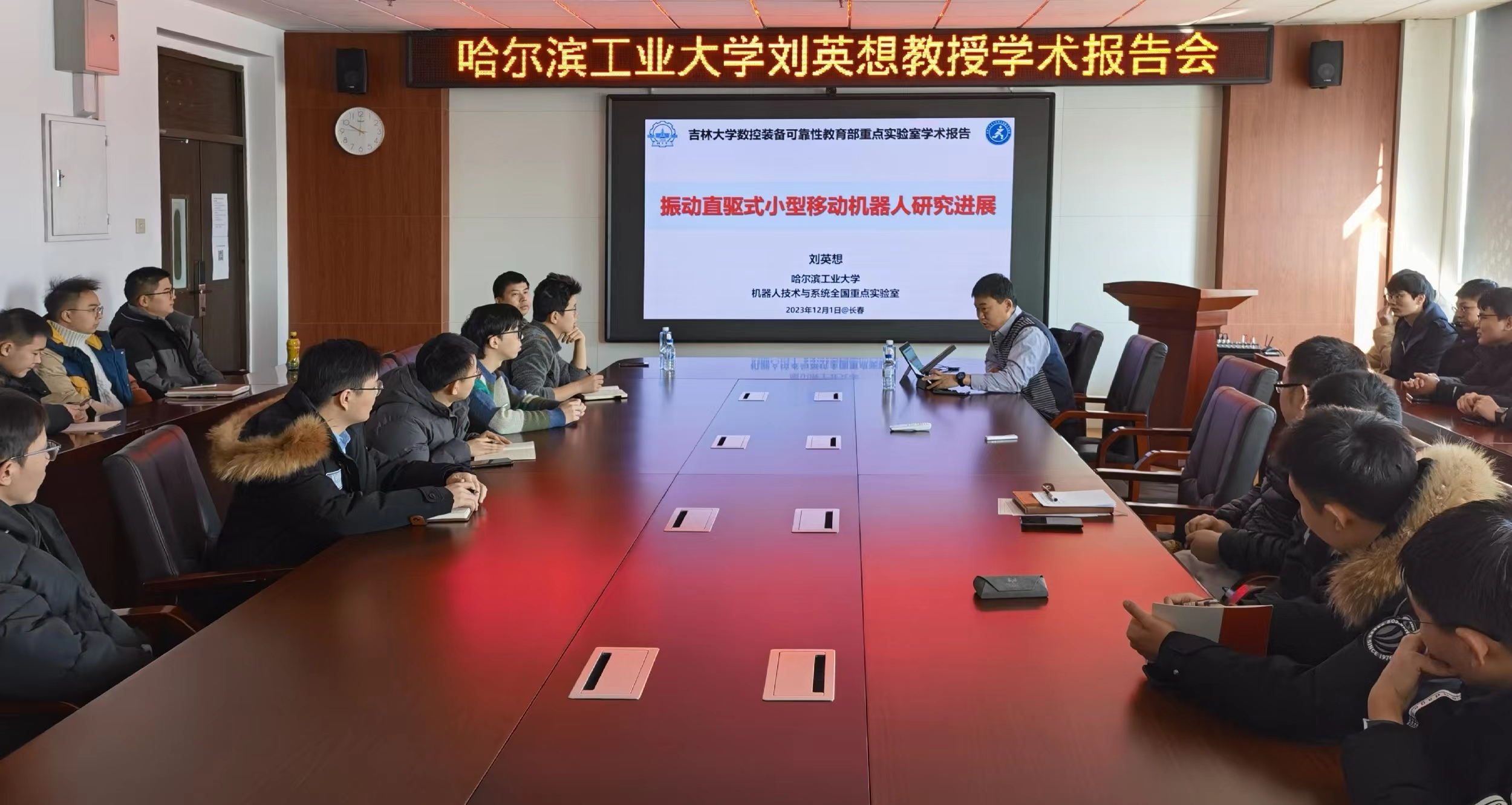 2023年12月1日上午10:00,受bevictor伟德数控装备可靠性教育部重点实验室黄虎副主任邀请,国家杰出青年科学基金获得者、全国优秀博士论文获得者、哈尔滨工业大学青年科学家工作室负责人、哈尔滨工业大学机电工程公司/机器人技术与系统国家重点实验室刘英想教授面向实验室及公司师生做了题为“振动直驱式小型移动机器人研究进展”的线下学术报告。报告会由重点实验室副主任黄虎教授主持,实验室以及公司师生40余人参加了此次学术交流活动。