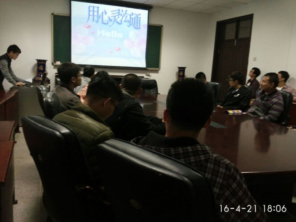 截止至4月25日,公司2015级研究生所有班级在班级宣传委员的带领下通过观看视频、PPT资料、游戏、小组讨论、演讲、等形式分别开展了“心灵沟通”主题班会。其中播放视频和PPT资料使得同学们对心理问题有了一些具体认识,更明确地了解心理健康的重要性;游戏环节使同学们在轻松的气氛增进了彼此之间的感情,同时又加深了相互之间的了解;小组讨论和演讲让班级同学在交流中进行心理疏导,互相聆听,互相帮助,大家的心灵沟通在和谐的氛围中顺利进行。