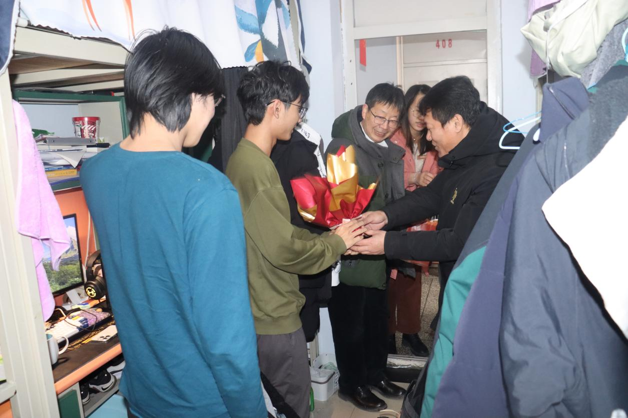 在2024年全国硕士研究生招生考试即将到来之际,为鼓舞考研学子士气,增强员工考研信心,12月20日中午,机械与航空航天工程公司党委书记郑福胜、经理周晓勤、公司党委副书记兼副经理马艳秋前往南岭校区十公寓、十二公寓慰问考研学子,并送上公司精心准备的考研福袋,为备考冲刺阶段的机械学子加油打气。公司员工工作办公室全体辅导员老师参与活动。