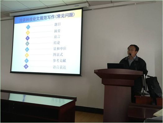 报告会上,梁福军编审结合审稿工作中发现的常见问题,详细阐述了科技论文规范写作的基本要求与注意事项。譬如,题目在内容表达上要概念准确、题文相扣、术语使用妥当,语言表达要简短精炼、结构合理、语序正确;摘要由目的、方法、结果、讨论等组成,中文摘要的研究背景应尽可能简洁,内容不要言过其实,英文摘要应简化措辞和重复单元,多用被动语态;前言应对国内、外研究现状进行综述,对研究目的意义交代清楚,创新点明确,对论文整体结构给与必要说明;结论需归纳总结使用的方法及研究结果,突出研究的独创性与创新性,并与标题、前言相呼应。报告会令广大师生对论文的写作规范有了进一步的认识和了解。