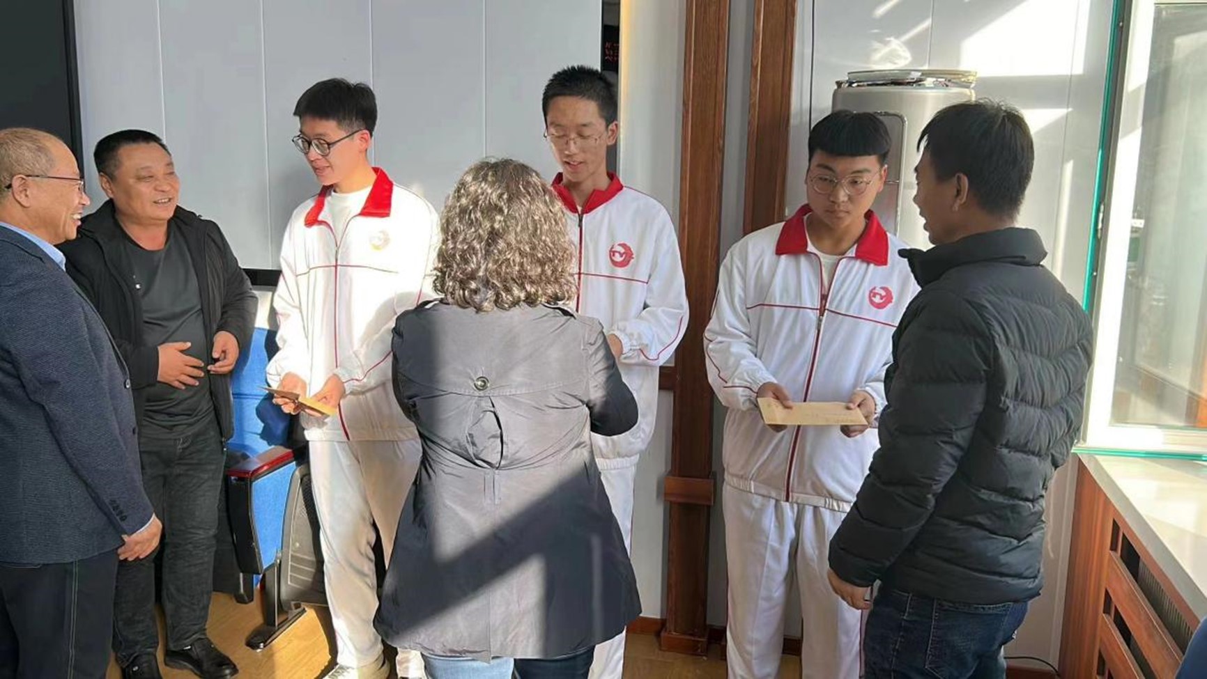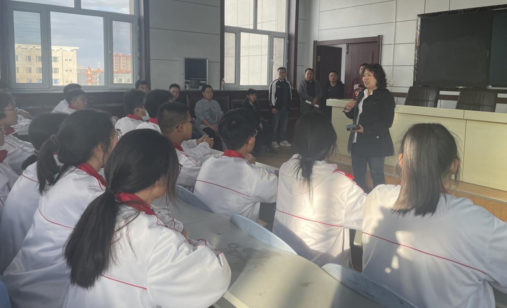师生们经过四个小时的车程到达通榆一中后,在捐资助学办张主任的精心组织与安排下,与三位受资助的同学进行了座谈交流,并由教师代表现场为他们颁发了助学金。呼咏书记代表全系教师表达了对通榆一中同学们的真挚关怀和殷切期望,鼓励同学们要不惧挫折、刻苦拼搏,不负家庭、公司和社会的期望。同学们也纷纷表示,助学金有效减轻了家庭的经济压力,使自己能够更加安心地学习,以后将更加刻苦努力,不负众望,争取早日回馈社会。随后,各位老师和研究生分组与高二年级的同学开展了深入的座谈交流,从学习经验、志愿填报、职业规划和心态调节等方面进行了答疑解惑,师生们结合自身的经验解答了同学们在学习生活中存在的实际问题和困惑。最后,全体教师表示,要进一步调动各方面的资源和力量,扩大资助的力度与范围,持续推进教育扶贫,巩固脱贫攻坚成果,为国家培养全面发展的高素质人才贡献力量。
