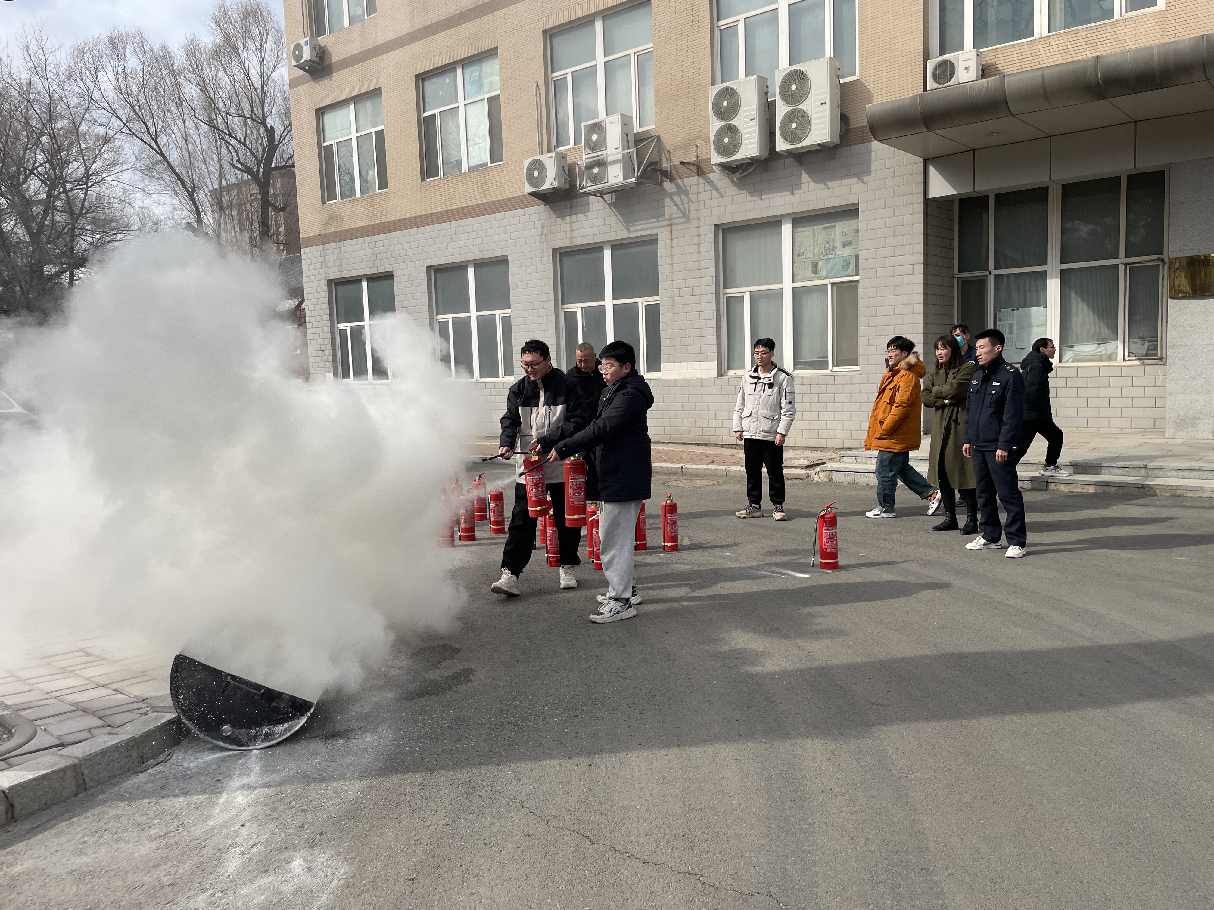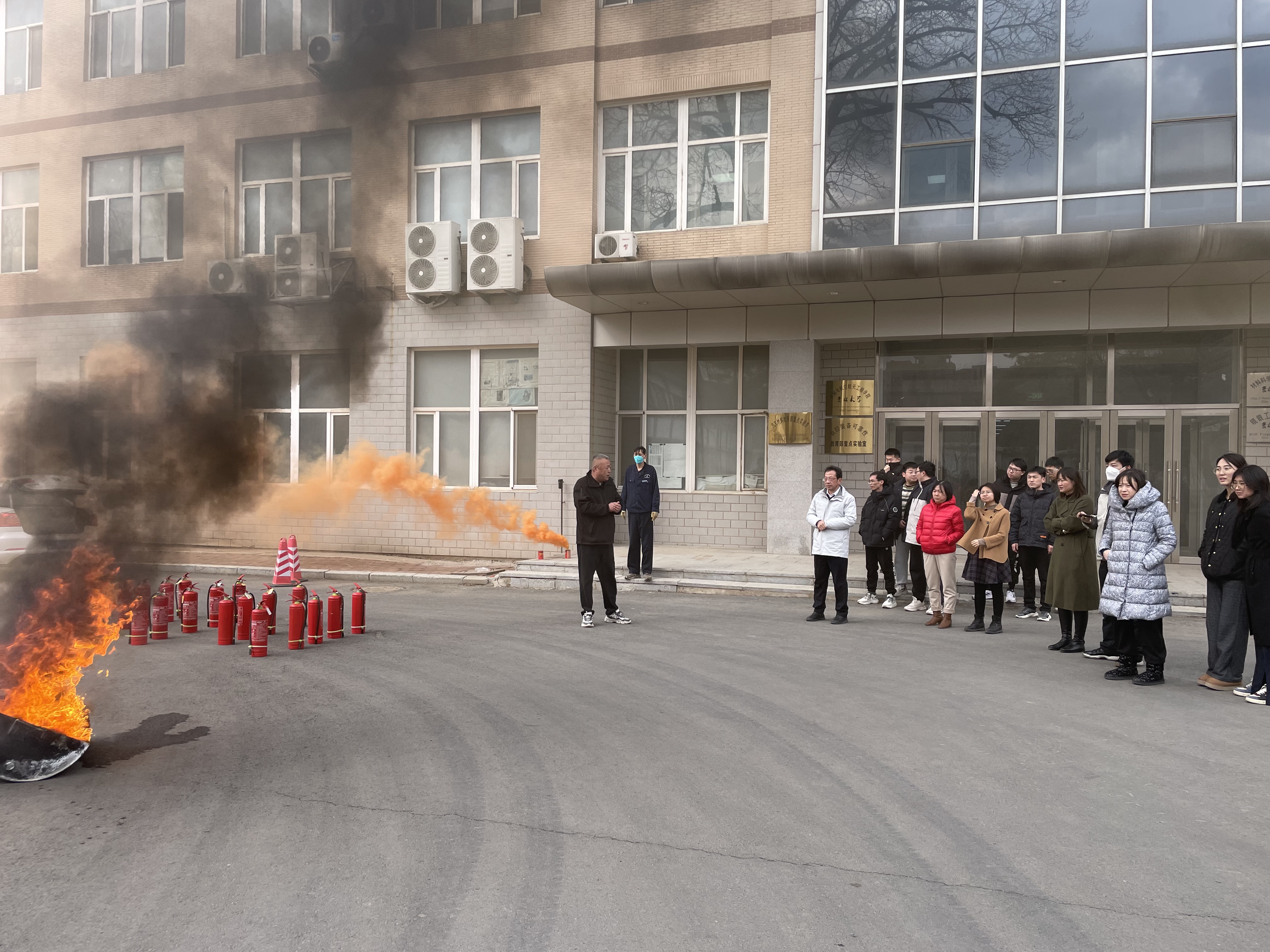 演练过程中,火灾警报声响起后,参演师生迅速按照预定的疏散路线有序撤离。撤离后,王中刚老师现场指导大家正确使用灭火器材,有效扑灭初起火灾,并强调了火灾逃生中的自我保护要点。整个演练过程紧张有序,参演人员表现出色,达到了预期效果。