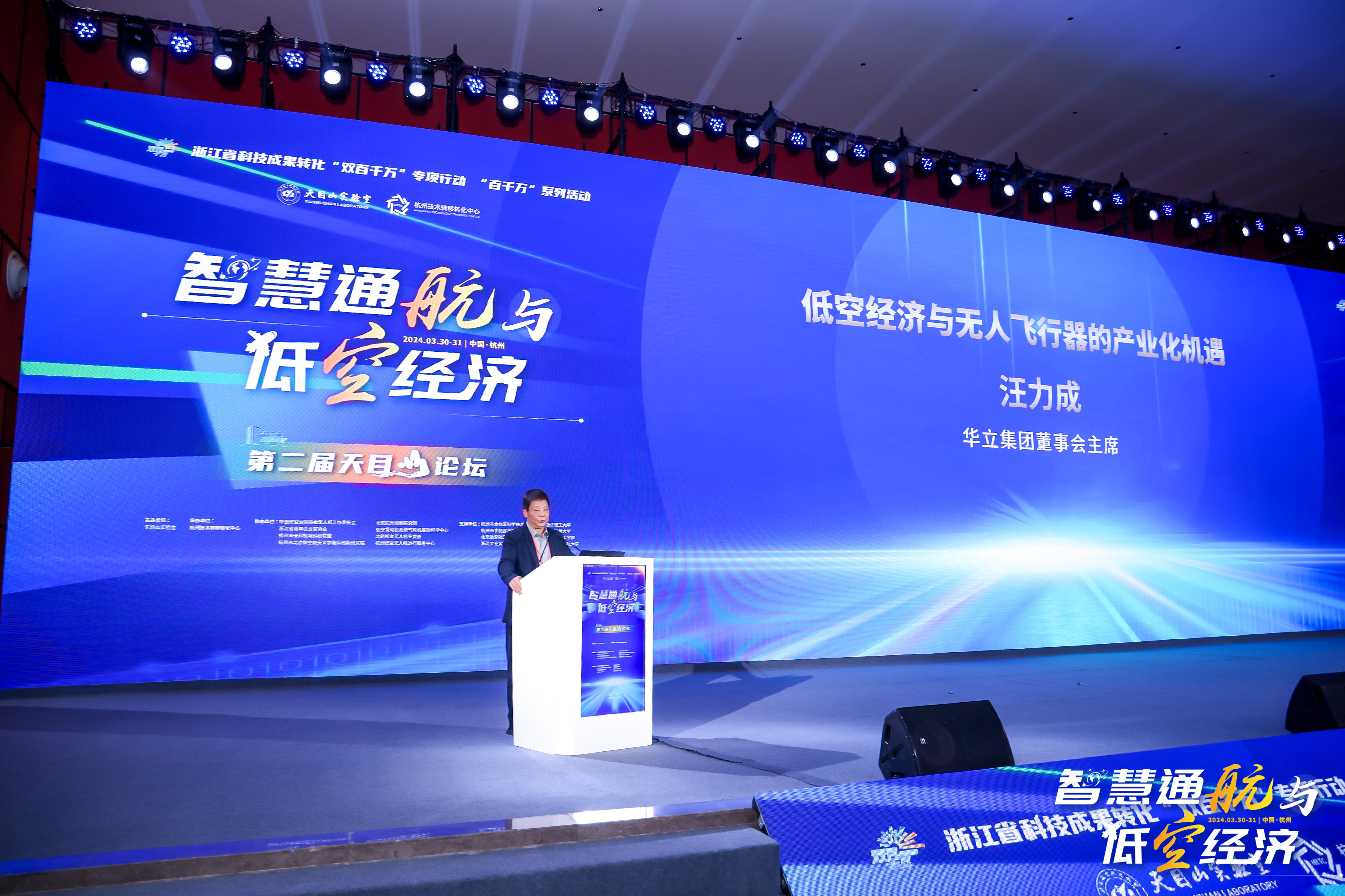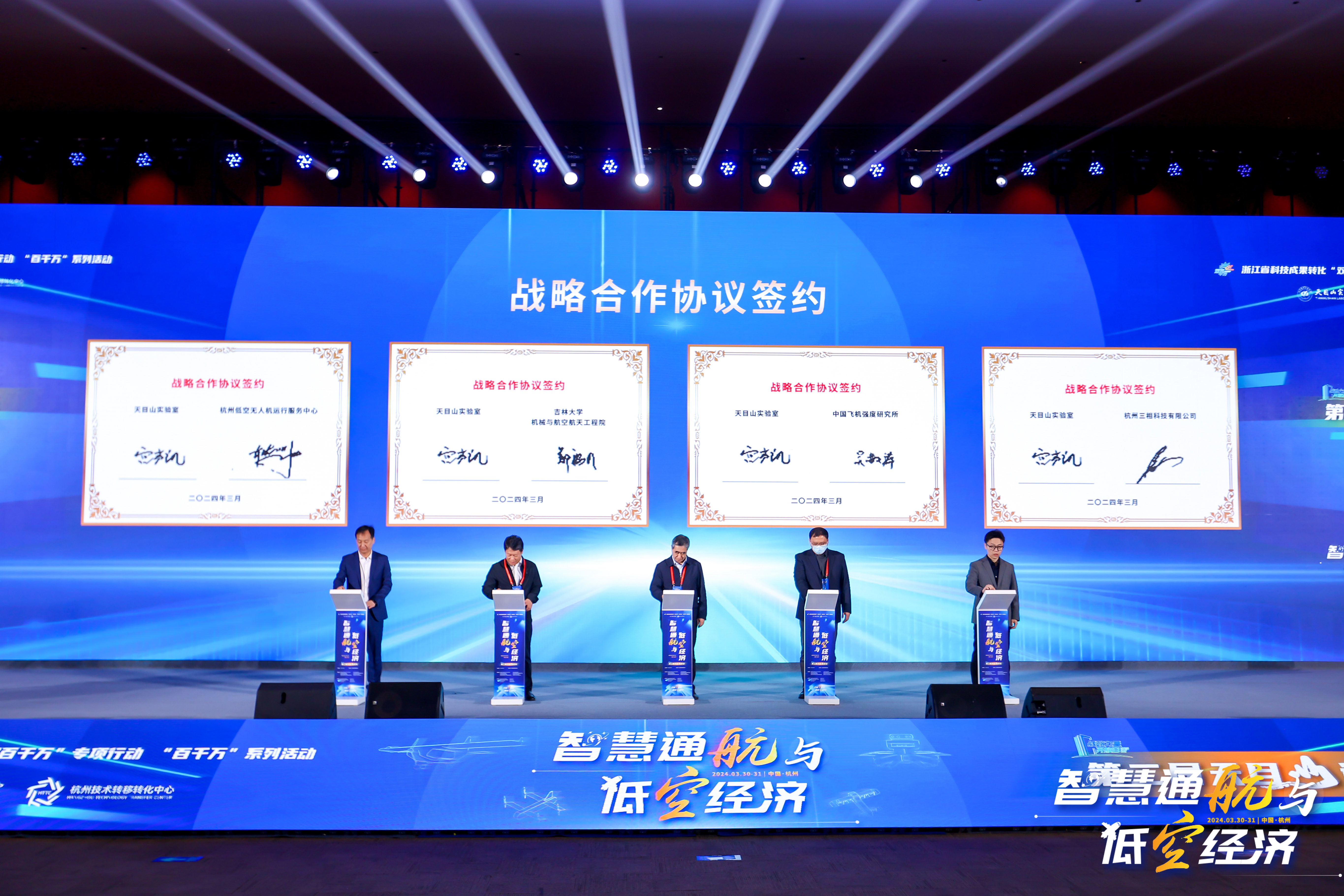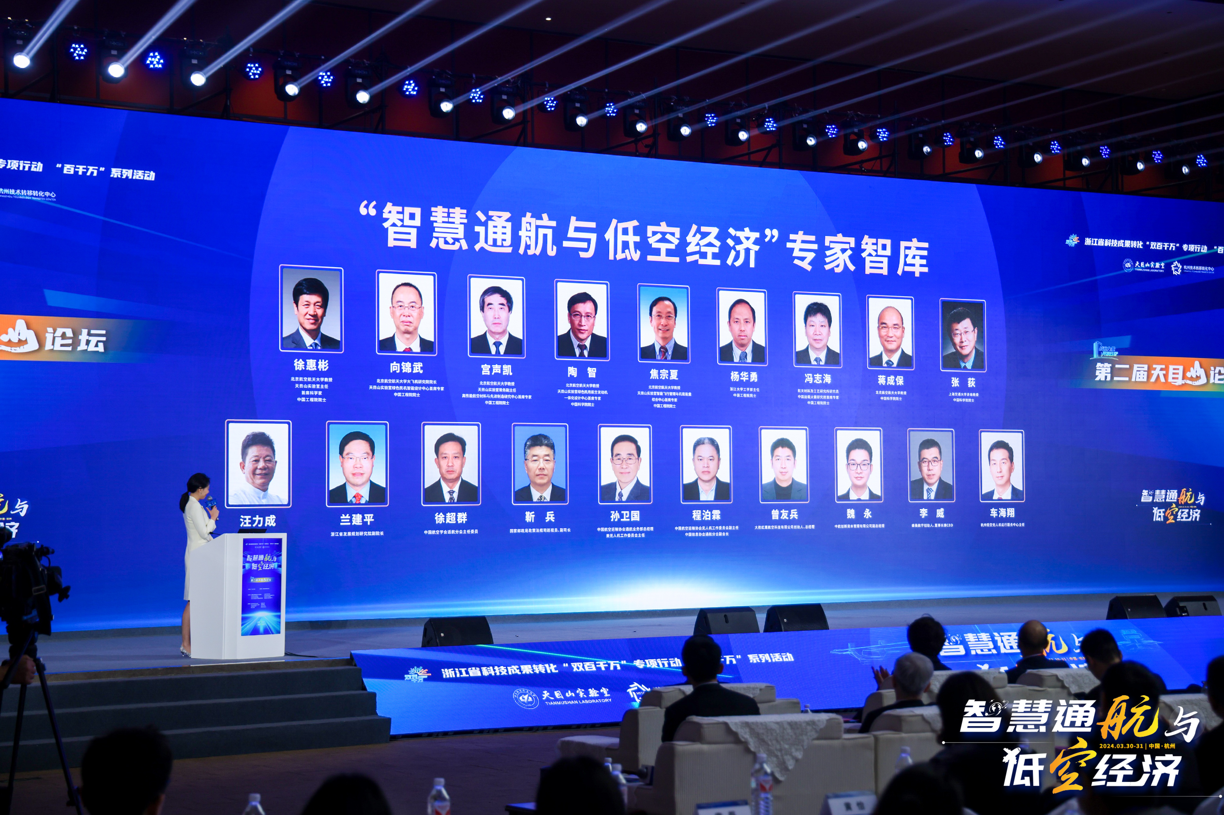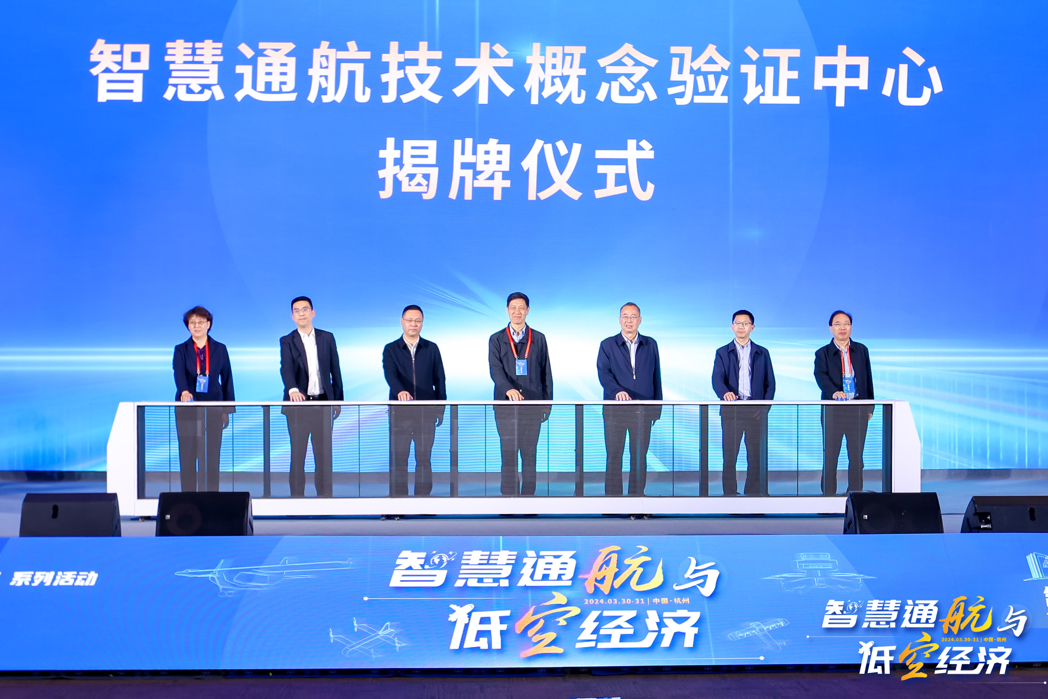 会上,天目山实验室“智慧通航技术概念验证中心”正式揭牌,大会主席徐惠彬院士,大会执行主席向锦武院士,杭州未来科技城党工委书记、管委会主任郭云伟,杭州城西科创大走廊管委会科技和人才服务局局长潘学冬,余杭区瓶窑镇党委副书记、镇长徐春,杭州技术转移转化中心总经理杨更生,北京航空航天大学国际创新研究院经理洪冠新共同揭牌。同时发布了“智慧通航与低空经济”专家智库,该智库由9位院士领衔,集结了多位顶尖科学家、发展战略专家、知名企业家及资深投资人的力量,将为低空经济尤其是飞行器技术研发与产业发展提供前瞻性和创新性的智力支撑。