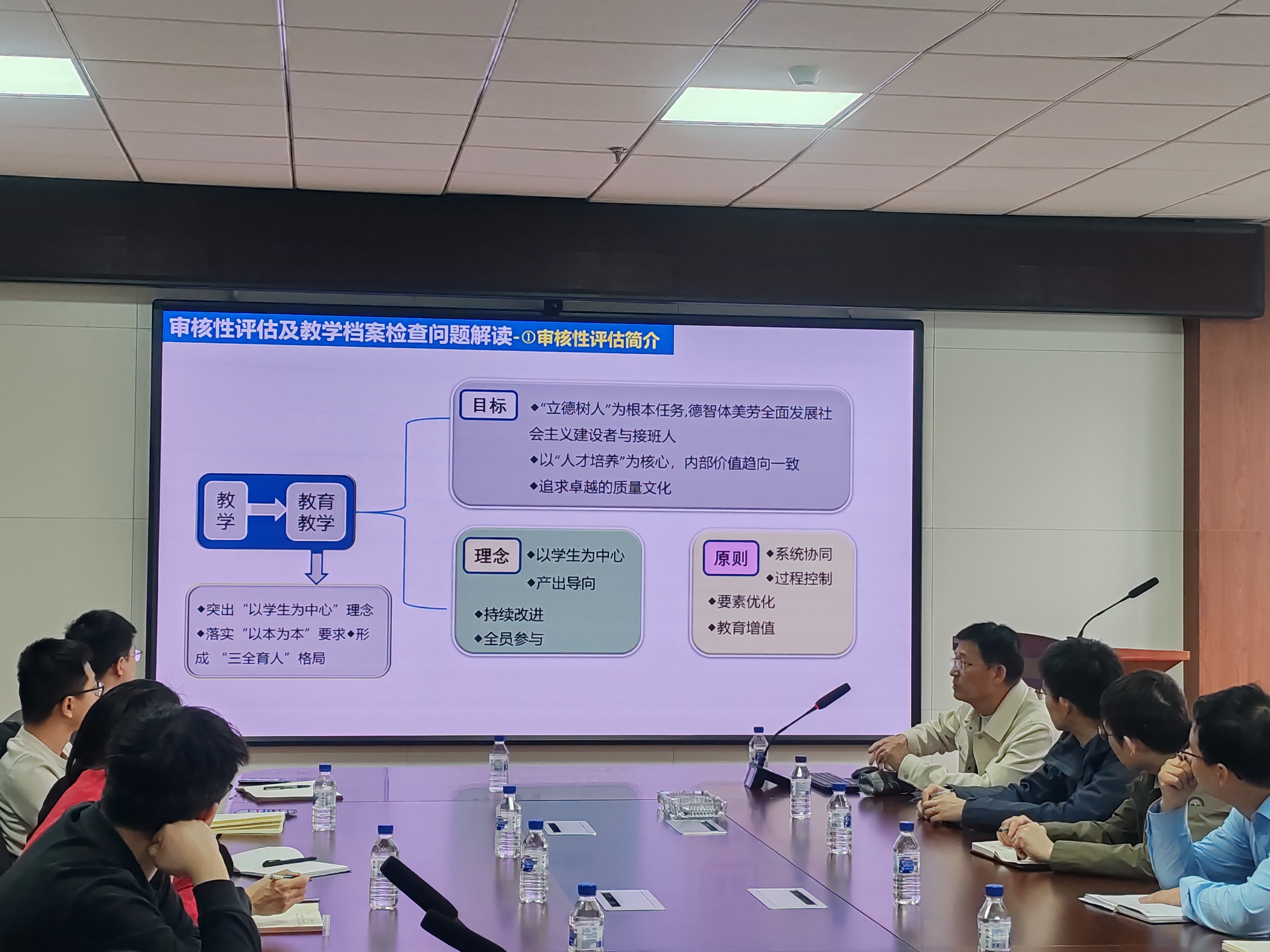 4月23日上午,特邀bevictor伟德工学部公司产品督导组组长曲兴田教授为公司教师分享“审核评估第二轮校内自评问题反馈及教学档案问题解读”主题报告。公司副经理吴文征、机械基础教学中心副主任董景石、各系教学主任、实践教学主任、课程负责人和骨干教师参加本次报告会。报告会由教学副经理吴文征主持。