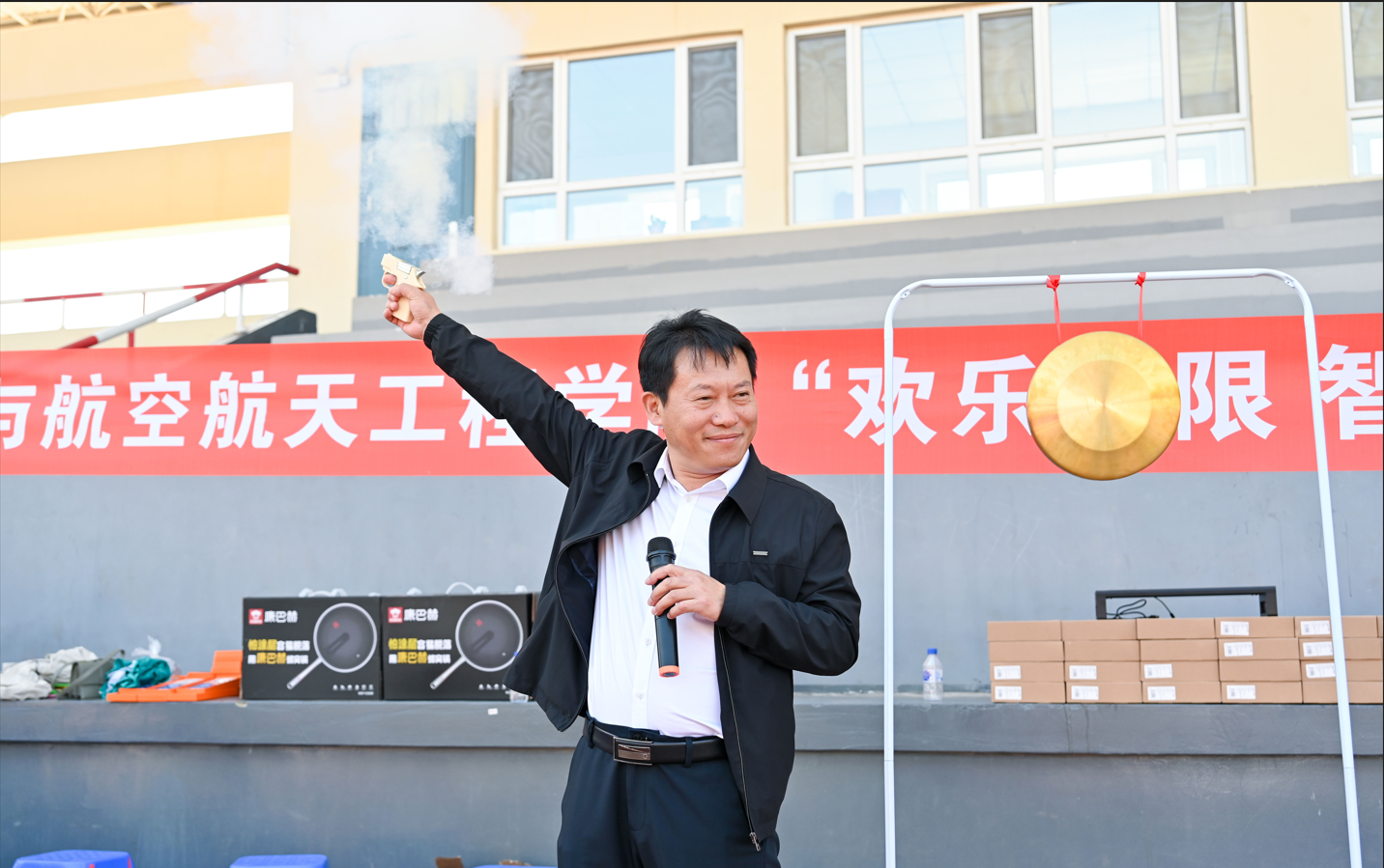 致辞结束后,郑书记鸣枪宣布首届趣味运动会正式开幕。