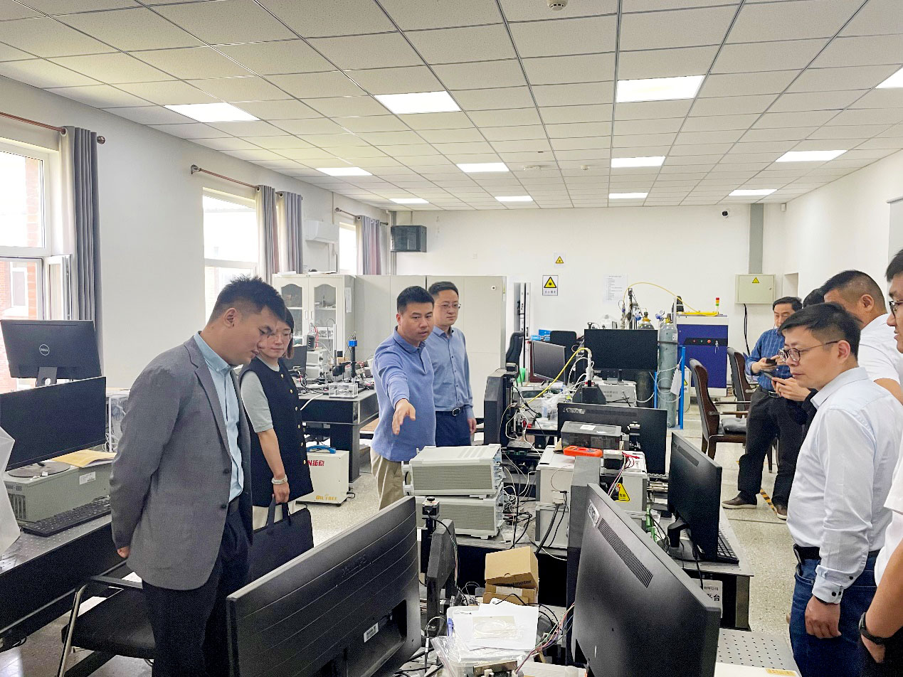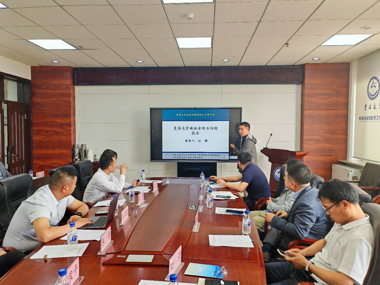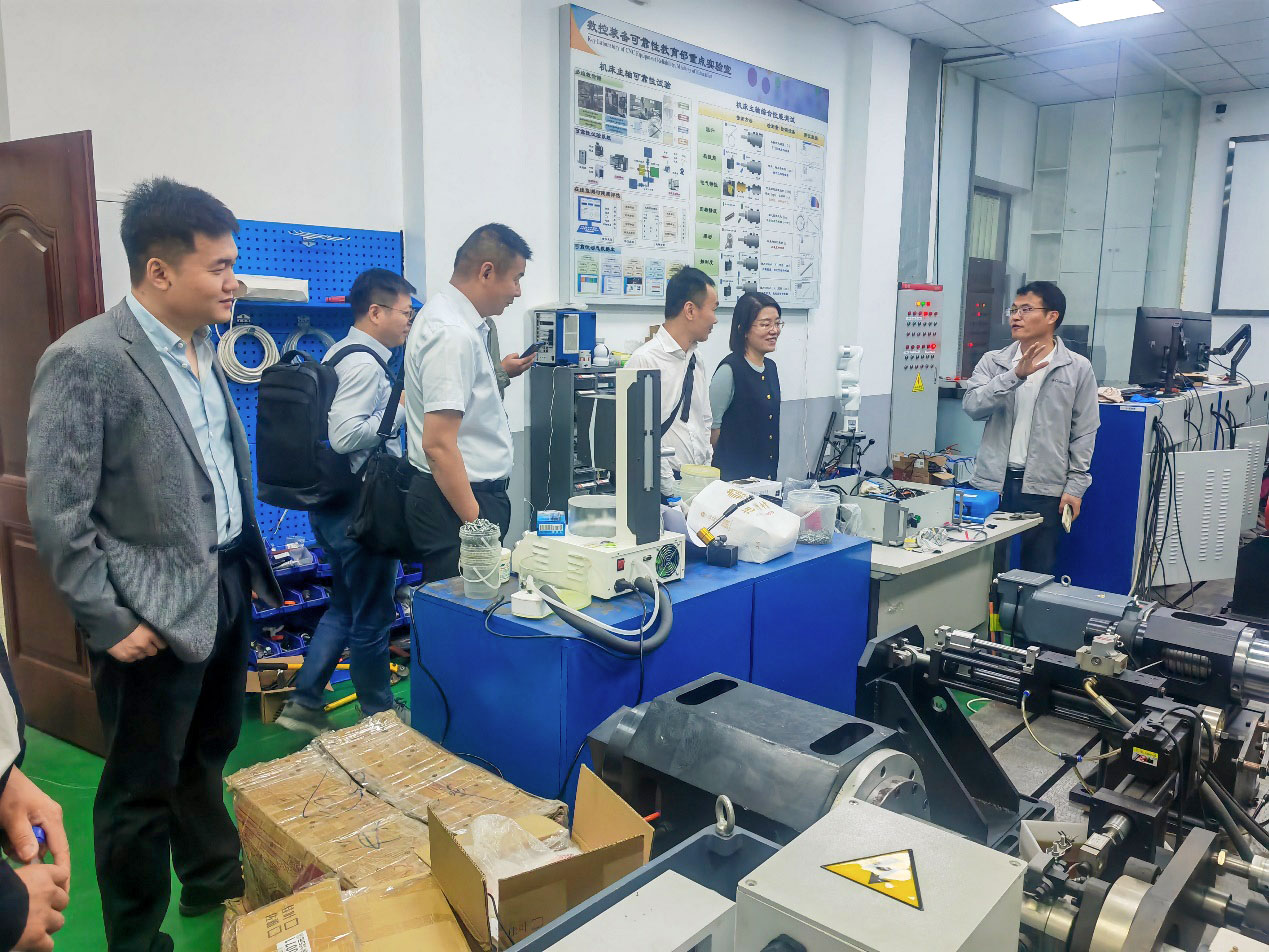 座谈结束后,王宇一行参观了数控装备可靠性教育部重点实验室及表面科学与技术研究室,陈传海、黄虎对实验室发展概况、具备的实验能力及取得的科研成果进行了详细讲解。