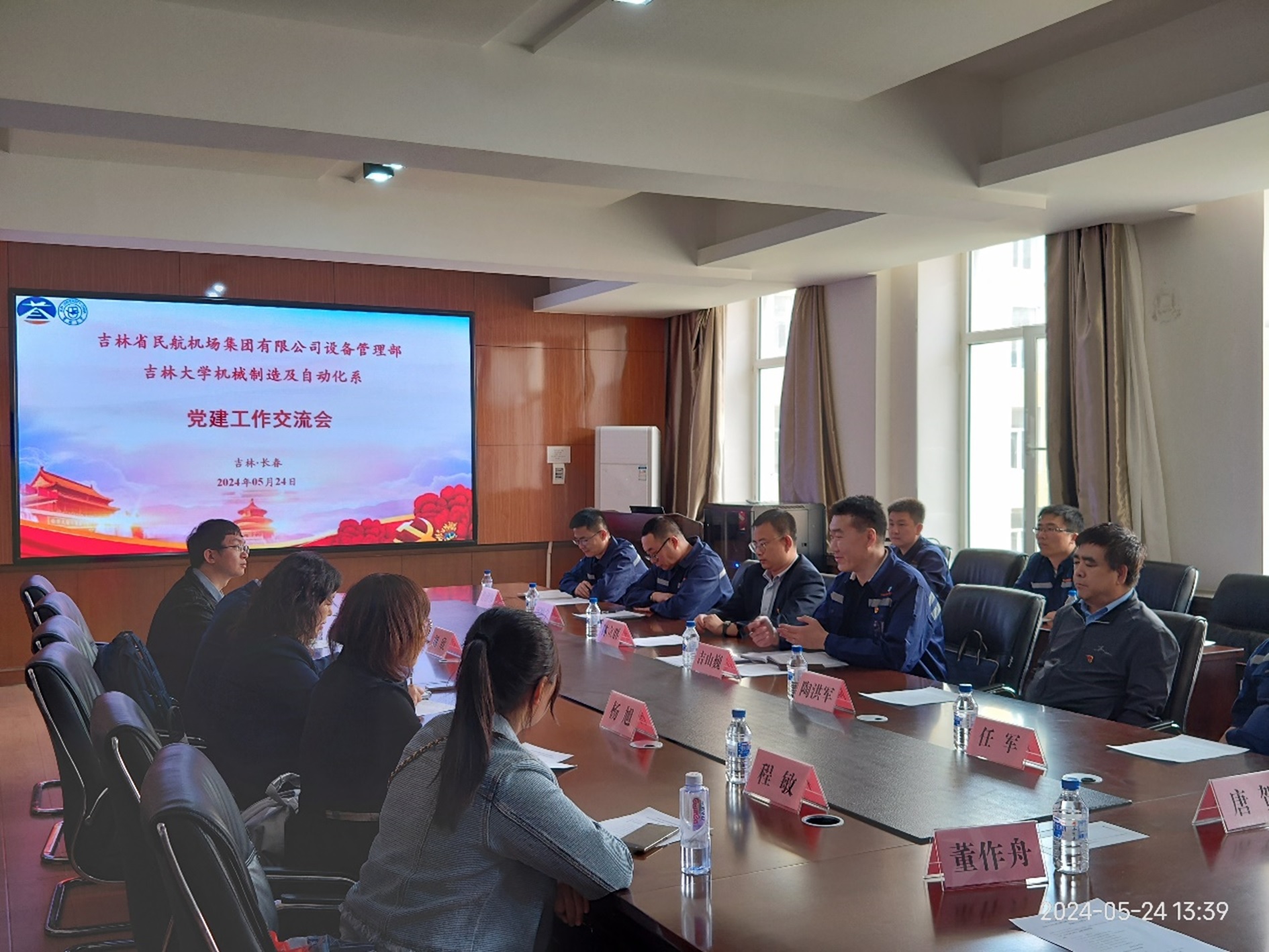 为贯彻落实习近平总书记关于党的建设的重要思想,持续推动党建工作融入中心工作,推进高质量党建引领高质量发展的“一融两高”建设,2024年5月24日,机械制造及自动化系教工党支部与吉林省民航机场集团有限公司设备管理部第一和第二党支部开展了“校企合作共探讨,深度交流促发展”的主题党建交流活动。机械制造及自动化系教工党支部书记呼咏、副书记刘欣,机械制造及自动化系副主任杨旭,吉林省民航机场集团有限公司设备管理部副总经理吉山巍、副总经理陶洪军和副总经理林立群参加了交流活动。